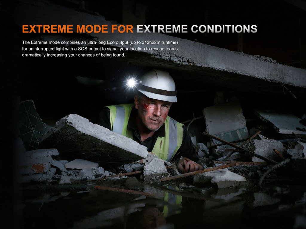 - Päť režimov výkonu: 300 lúmenov (7,3 hodiny) -> 100 lúmenov (22,8 hodiny) -> 30 lúmenov (68 hodín) -> 5 lúmenov (313,3 hodiny) -> SOS (30 lúmenov).