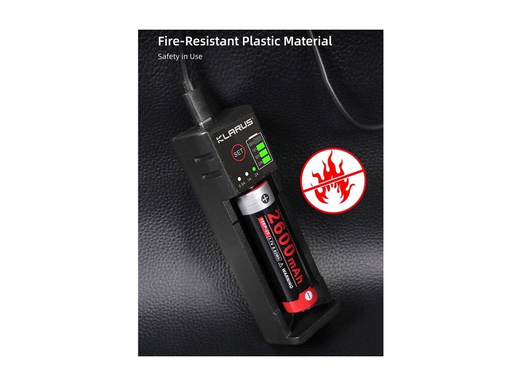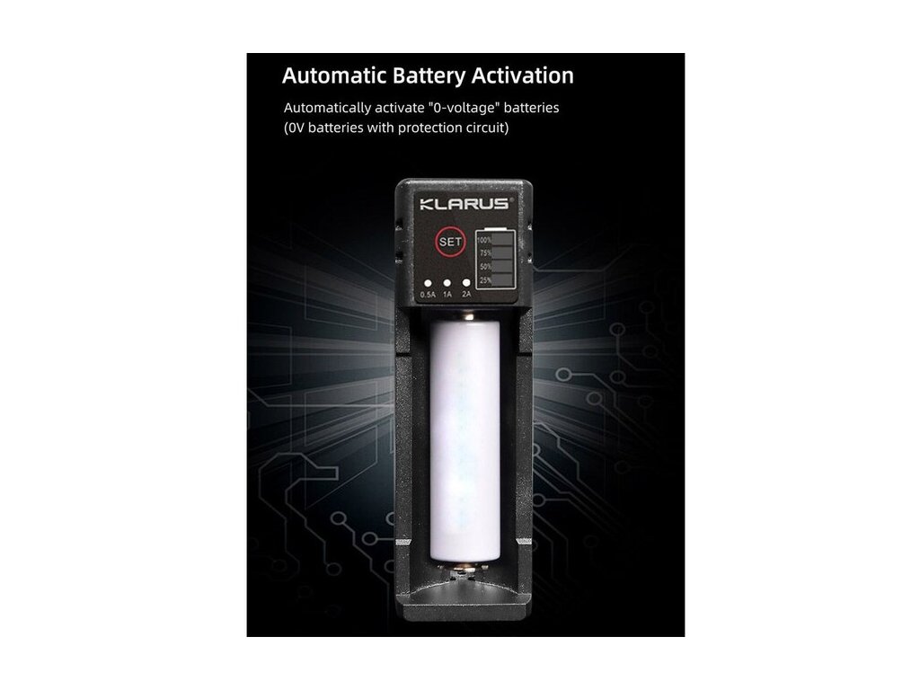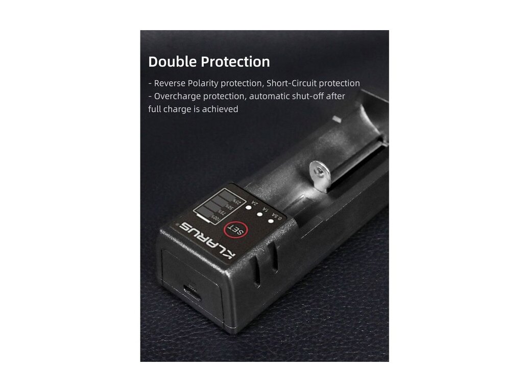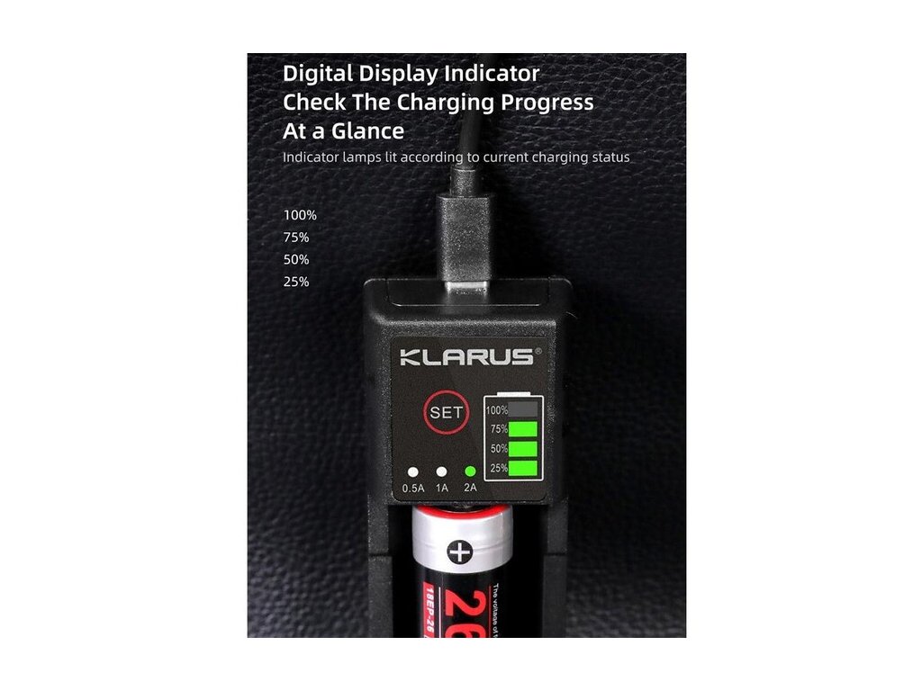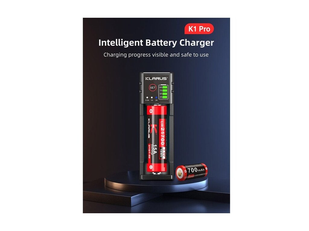 Inteligentná nabíjačka K1 PRO je jednošachtová univerzálna nabíjačka od spoločnosti Klarus, určená na nabíjanie: 14400, 14500, 16340, RCR123, 16650, 17650, 17670, 18350, 18490, 18500, 18650, 19490, 20700, 21700 (aj s ochrannou elektronikou), 22700, 26650, 26700, 32650 Li-ion akumulátorov 3,6/ 3,7V a Ni-MH/ Ni-Cd: 1,2V AA, AAA, AAAA, C, SC akumulátorov. Nabíjačka Klarus K1 PRO má zdokonalené nabíjanie. Nabíjací prúd je možné pomocou tlačidla SET nastavit, buď 0,5A, 1A alebo 2A. Po vložení akumulátora do nabíjačky, automaticky začne nabíjanie nabíjacím prúdom 0,5A. Je ho možné spomínaným tlačidlom SELECT zmeniť. Ak napätie akumulátora klesne pod 3V, vie ho nabíjačka špeciálnou funkciou ZERO VOLTAGE (0V) nabíjania zachrániť. Je to najpraktickejšia a najvhodnejšia mini univerzálna rýchlo nabíjačka pre Li-ion a Ni-MH akumulátory. Ďalšou výhodou tejto nabíjačky je to, že nabíja všetky druhy Li-ion akumulátorov a to vďaka pohyblivému mínusovému kontaktu. K1 PRO používa rýchly USB-C port, ktorý je v súčasnosti najpoužívanjší, takže môžete na napájanie nabíjačky používať aj nabíjací USB adaptér od mobilného telefónu. Vďaka jej úzkemu tvaru, umožňuje nabíjanému akumulátoru dokonalý odvod tepla. Po vložení akumulátora do nabíjačky sa kontrolka nabíjacieho prúdu rozsvieti na modro a rozsvieti sa blikajúca zelená kontrolka nad ňou, ktorá znázorňuje aktuálny percentuálny stav nabitia akumulátora (podľa štádia nabitia 25%, 50%, 70%, 100%). Po plnom nabití akumulátora, posledná zelená kontrolka 100%, už nebliká (všetky dieliky 25%, 50%, 70%, 100% trvale svietia na zeleno) a nabíjačka automaticky zastaví nabíjanie, pri dovŕšení plného nabitia 4,2V pri Li-ion a 1,5V pri Ni-MH akumulátoroch. Jej telo je vyrobené z nehorľavého a tvrdeného ABS plastu. Klarus K1 PRO je praktická a malá univerzálna 1 šachtová nabíjačka, ktorú môžete mať vždy so sebou.