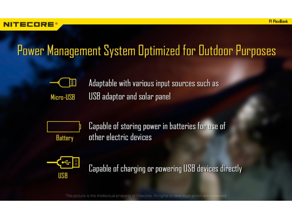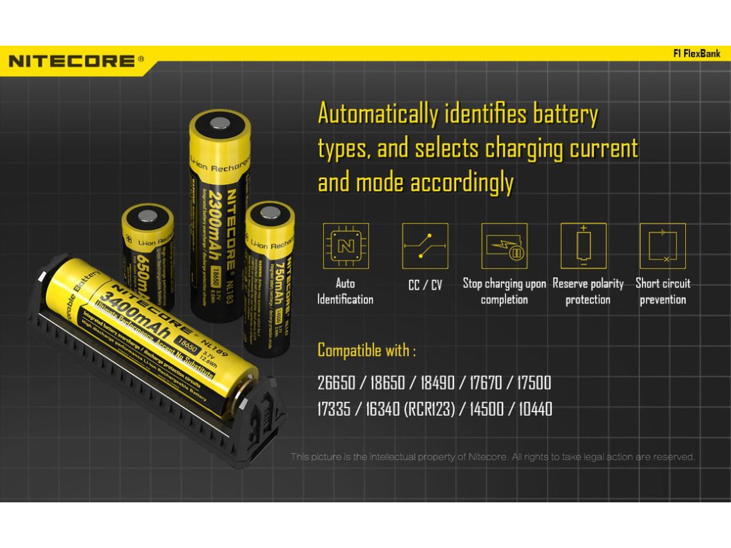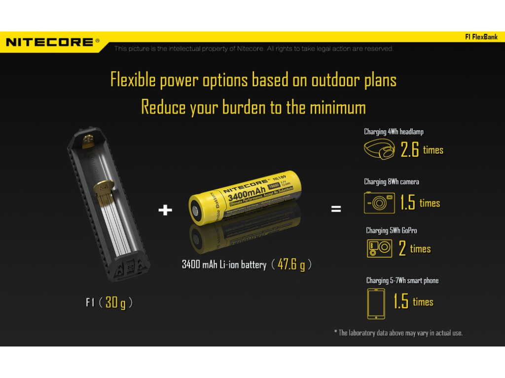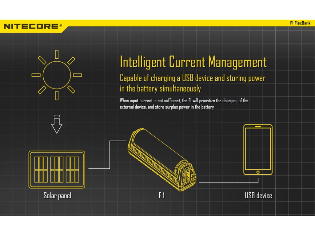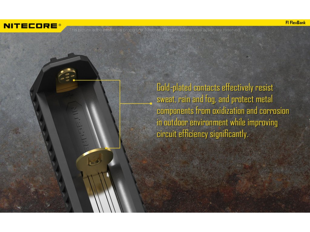 NITECORE UI1 je výkonná, kompaktná a prenosná Li-ion nabíjačka Micro-USB s jedným nabíjacím slotom, schopná dosiahnuť maximálny nabíjací prúd 800mA. Je kompatibilná s Li-ion/ IMR: 10340, 10350, 10440, 10500, 12340, 12500, 12650, 13450, 13500, 13650, 14430, 14500, 14650, 16500, 16340 (RCR123), 16650, 17350, 17500,17650, 17670, 18350, 18490, 18500, 18650, 20700, 21700, 22500, 22650, 25500, 26500, 26650. Indikátor nabíjania, poskytuje používateľom aktuálne vidieť stav nabitia Li-ion akumuátora v reálnom čase, v podobe blikania (svietenia) 3 fialových indikačných dielikov (v závislosti od štádia nabitia Li-ion akumulátora). Poskytuje tiež niekoľko druhov ochrany, aby sa zabránilo spätnej polarite, prebíjaniu a prehriatiu.
