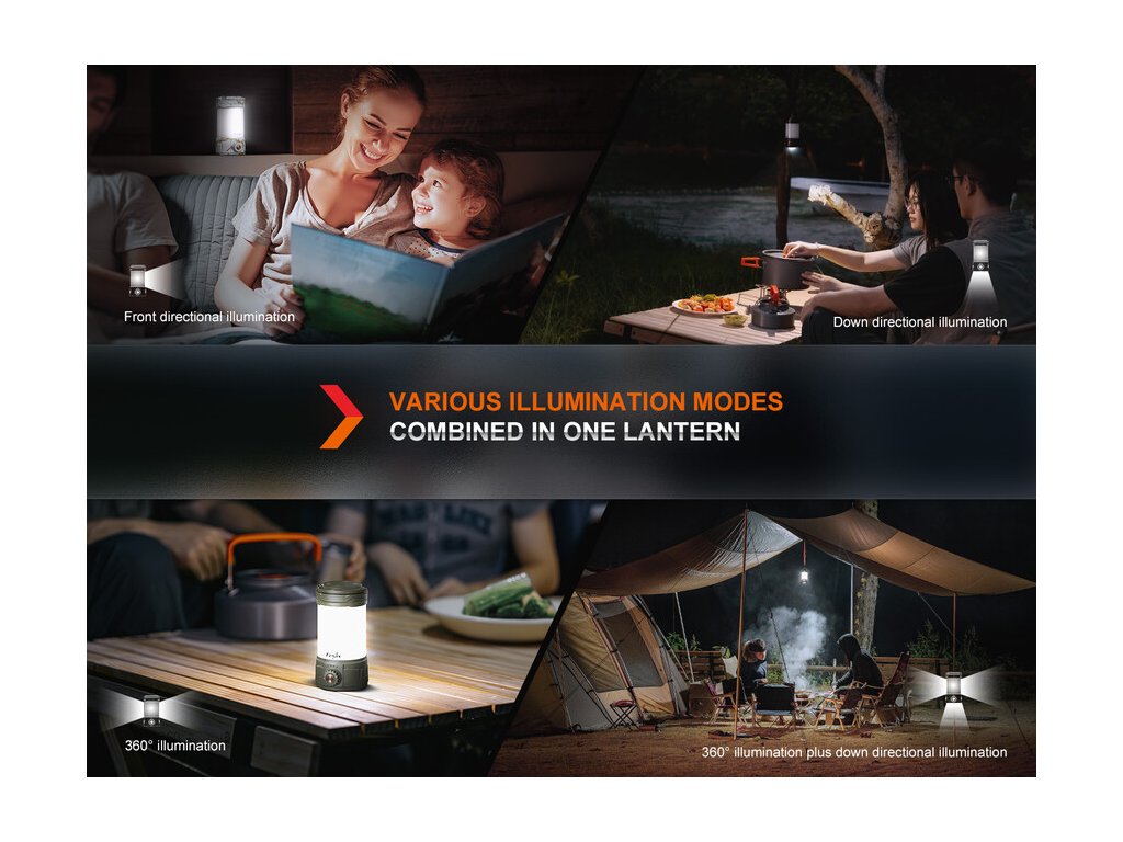 Fenix CL26R PRO je praktická prenosná nabíjateľná kempingová LED lampa, ktorú môžete použiť na osvetlenie miestnosti, stanu, táboriska, karavanu, chaty, lode či pracovného stola. Navyše disponuje funkciou powerbanky, takže sa dá využiť na dobíjanie iných USB zariadení. Lampa ponúka funkciu kruhového svietenia a spodné svietenie, jednotlivé svetelné režimy sa prepínajú otočným ovládačom. Navyše oba spôsoby svietenia je možné kombinovať a dosiahnuť tak celkový výkon až 650 lúmenov. CL26R PRO je napájaná Li-ion akumulátorom typu 21700 s kapacitou 5000mAh (súčasť balenia), ktorý sa nabíja priamo v lampe, pomocou USB-C konektora a dodá energiu až na 408 hodín prevádzky v najnižšom režime. Nechýba ani červené svetlo, ktoré nenarúša adaptáciu očí na tmu. Predné jednosmerné svietenie a spodné svietenie sú veľmi praktické funkcie, výrazne šetriace energiu. Hodia sa obzvlášť v situáciách, keď kruhové všesmerové osvetlenie nie je potrebné. Vďaka odolnej a nárazuvzdornej konštrukcii s krytím IP66 je možné svietidlo bezpečne používať aj v nepriaznivom počasí (silný dážď). Horná strana lampy je opatrená závesným okom s možnosťou jeho otvorenia ako karabíny a silným neodymovým magnetom, takže ju možno ľahko zavesiť či upevniť na čokoľvek železné. Vďaka kompaktným rozmerom je lampa obzvlášť vhodná na kempovanie a turistiku, ale využijete ho aj v karavane, na lodi či na chate.