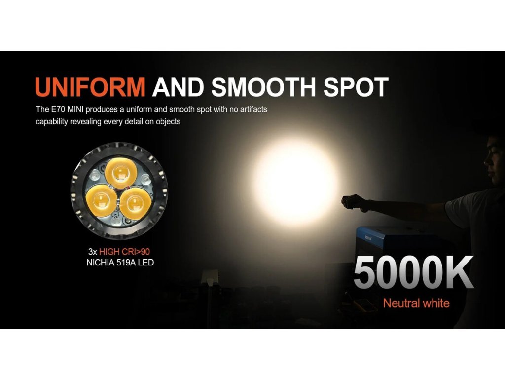 Acebeam E70 MINI patrí do skupiny EDC ručných LED bateriek, ktorú budete chcieť nosiť, každý deň so sebou! Vďaka svojmu krásnemu vzhľadu (dvojité telo), úžasnému svetelnému výkonu 2000lm. Dosvieti na vzdialenosť 153m a je veľmi kompaktných rozmerov! Telo je vyrobené z tvrdeného leteckého hliníka (AL). V hlave svietidla je osadená výkonná a populárna 3x Nichia 519A LED, ktorá reálne vykresluje odtiene farieb objektov a osvetleného prostredia. Vysoké CRI90 sa vyznačuje tým, že svetlo nemá odtieň do zelena a má lepšiu reprodukciu červenej farby. Dizajn a vyhotovenie zadného spínača z nehrdzavejúcej ocele (Stainless steel), pôsobí úhľadne a moderne. Spínač má dômyselne vymyslenú ochranu, proti nechcenému zapnutiu (napr. vo vrecku nohavíc) a to takú, že je možné svietidlo zapnúť iba rýchlym dvojitým kliknutím. Unikátny dutý dizajn s dvojitým vnútorným telom, je štýlový, ale tiež zlepšuje účinnosť rozptylu tepla a účinne odvádza teplo z hlavy svietidla. Digitálna regulácia výkonu, umožňuje stály výkon počas celej doby svietenia. Inteligentný systém regulácie teploty ITS, poskytuje stabilitu a optimálny výkon. Táto ochrana proti prehriatiu, slúži na to, že vzhľadom k miniatúrnym rozmerom LED baterky a veľkému výkonu v najvyšších režimoch, elektronika ITS automaticky zníži jas, akonáhle dosiahne teplotu 60°C. Po znížení teploty sa dajú najvyššie režimy znova aktivovať. E70 MINI je napájané na 1x USB-C nabíjateľný Li-ion IMR18650 3100mAh 15A 3,6V. Ponúka 6 režimov svietenia: Turbo 100%-30%, 45%-30%, 19%, 9%, 3%, 1% + 1 zábleskový režim STROBE 50%. Zapnutie/ vypnutie a zmena režimov svietenia, prebieha pomocou spomínaného zadného spínača. Telo svietidla je vyrobený z odolného tvrdeného hliníka s vysokou pevnosťou, odoláva pádom z výšky 1m a je aj vodeodolné podľa štandardu IP68. Na tele svietidla je osadená aj praktická spona, vyrobená tiež z nehrdzavejúcej ocele (Stainless steel), pre prichytenie svietidla napr. za opasok nohavíc. Svietidlo si pamätá posledný zvolený režim svietenia, okrem režimu Turbo 100% a STROBE. Vysoký výkon v tak malom tele (dĺžka iba 11,1cm), robí z E70 MINI skvelé svietidlo na cestovanie, pátracie a záchranné operácie, pre dobrodruhov, outdoorových nadšencov, zberateľov, ochranárov a aplikácie v priemysle. Je to tiež dobrá voľba pre vašu novú kolekciu z rady E od spoločnosti Acebeam! Majte ich všetky!
