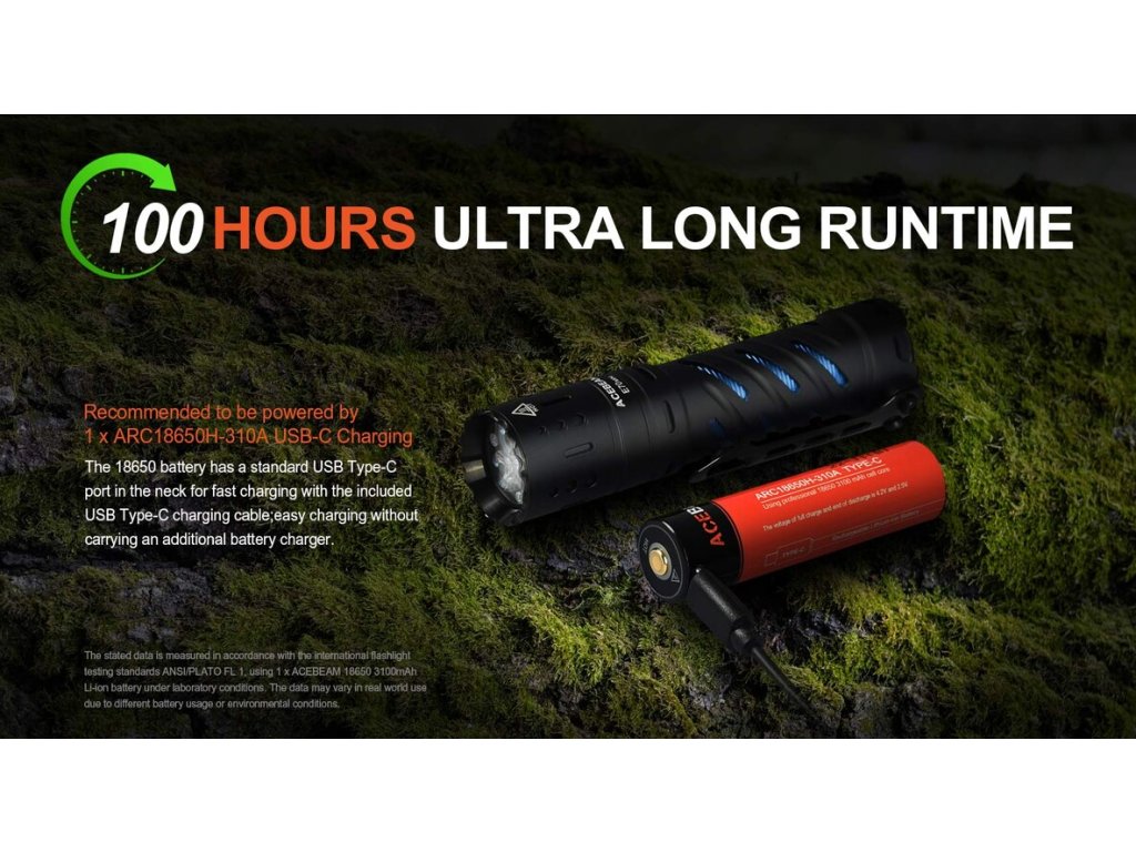 LED Baterka Acebeam E70 MINI + Li-ion IMR18650 3100mAh 15A USB-C nabíjateľná