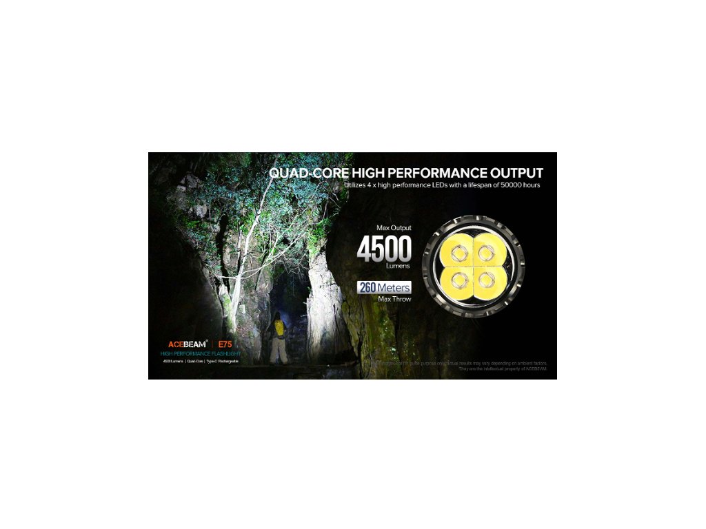LED Baterka Acebeam E75, 4x High-performance LED + Li-ion aku. IMR 21700 5000mAh, USB-C nabíjateľná