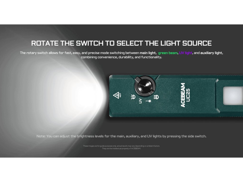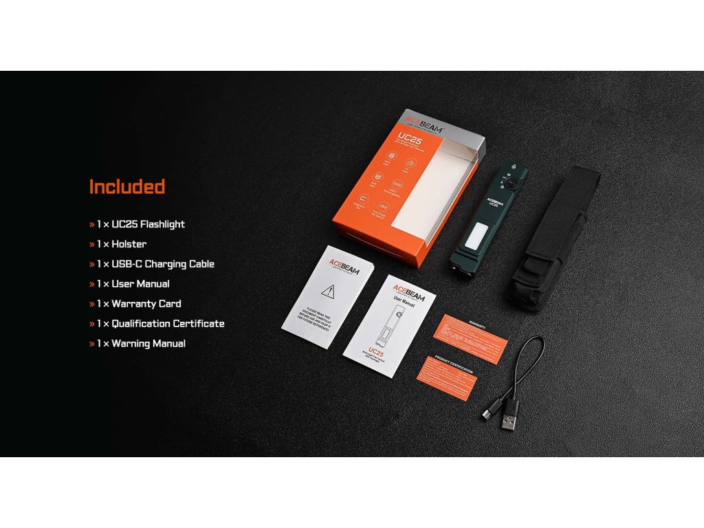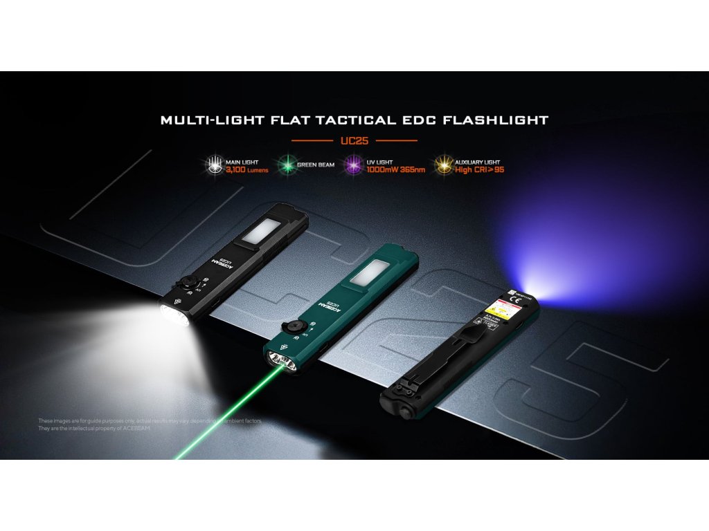 Acebeam UC25 Multi‑Light Tactical EDC Flashlight je prémiová, multifunkčná EDC (Everyday Carry) taktická LED baterka navrhnutá tak, aby spojila výkonné svetlo, všestrannosť a každodennú praktickosť v jednom kompaktnom tele. Hodí sa pre outdoorové aktivity, profesionálne nasadenie, kontrolné a inspekčné práce, ale aj pre bežné denné použitie.