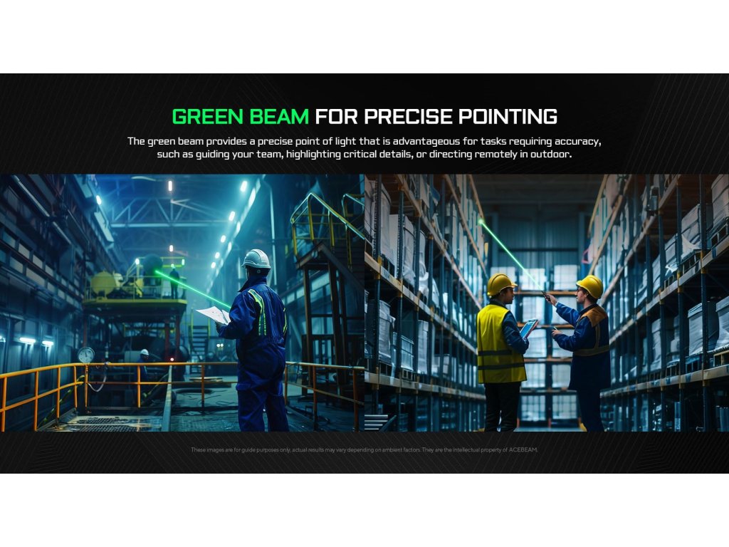Zelený lúč (Green Beam) – pre presné zameranie cieľa či navigáciu.