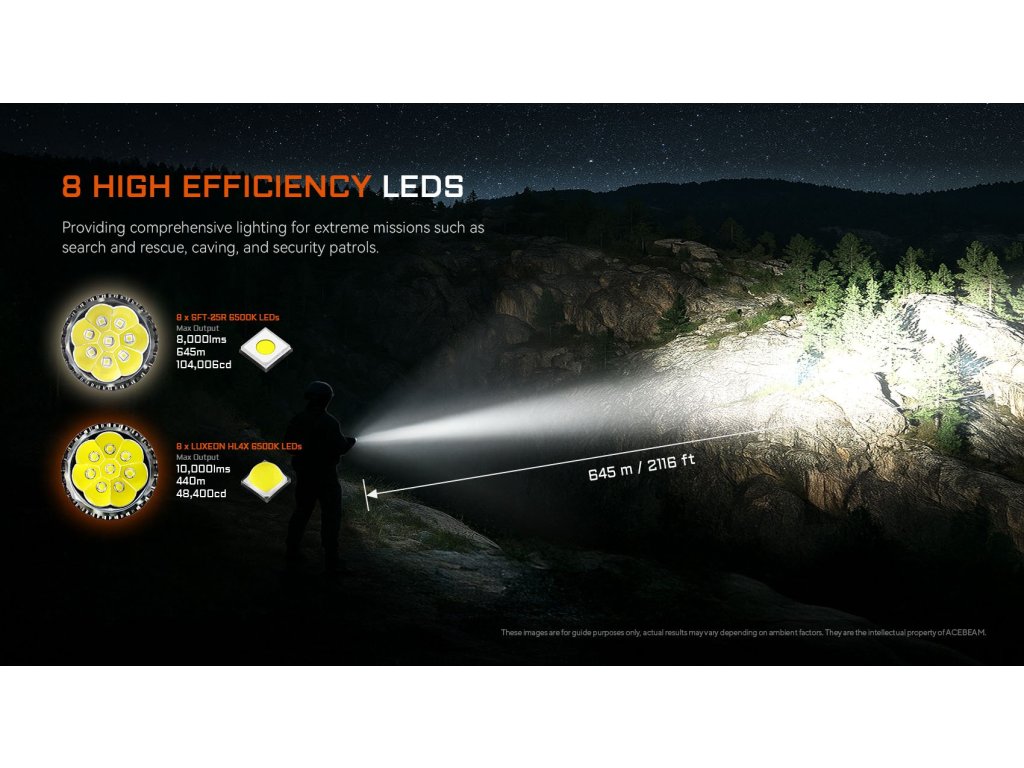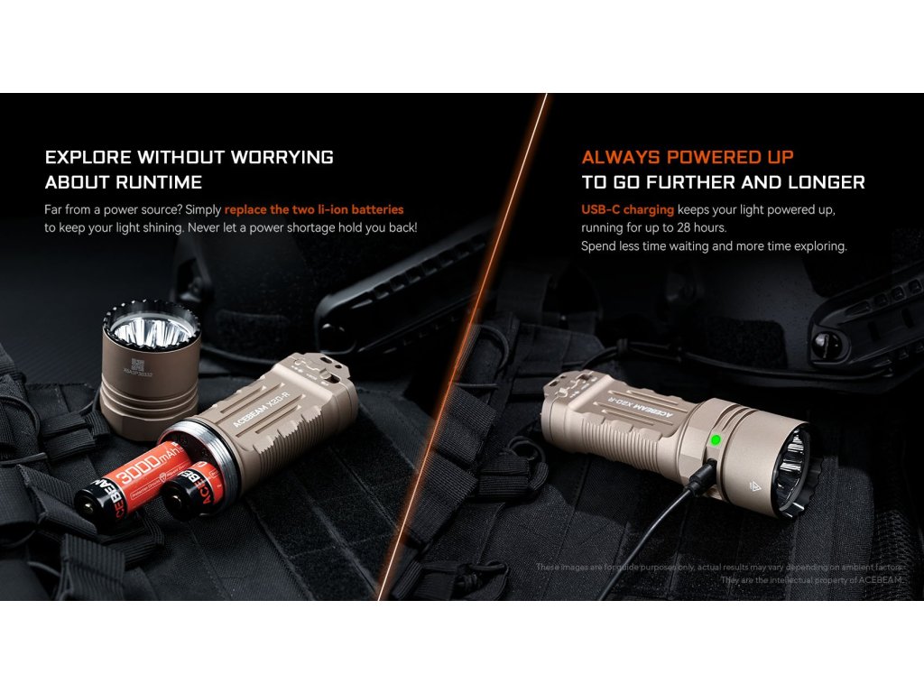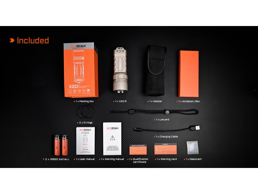 LED Baterka Acebeam X20-R, 8000lm, 645m+2x Li-ion aku. IMR 18650 3000mAh, USB-C nabíjateľná