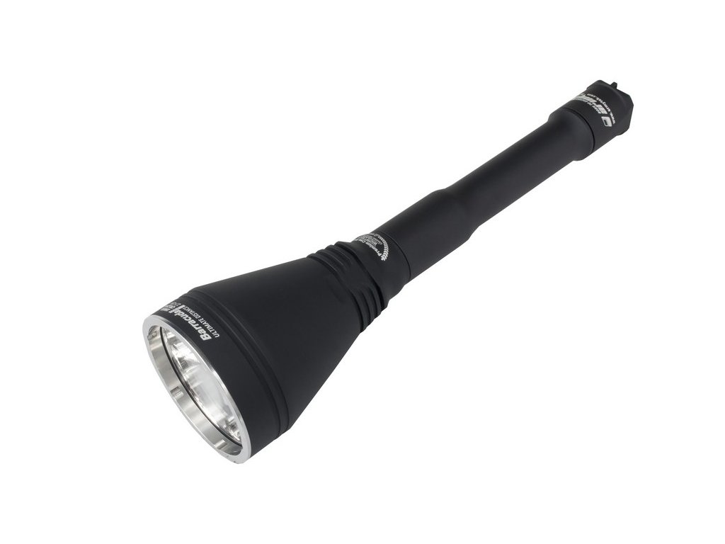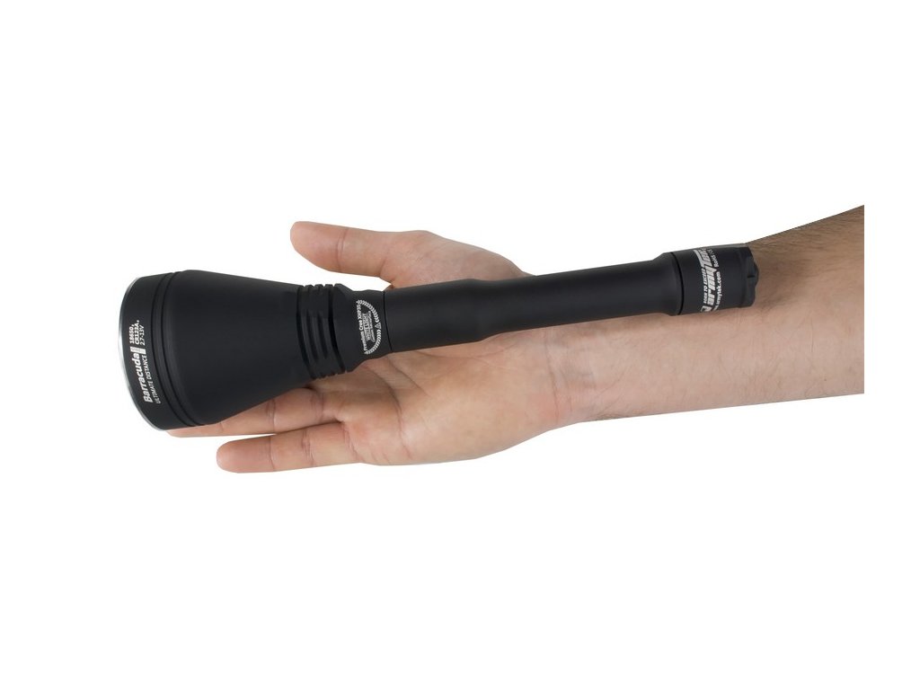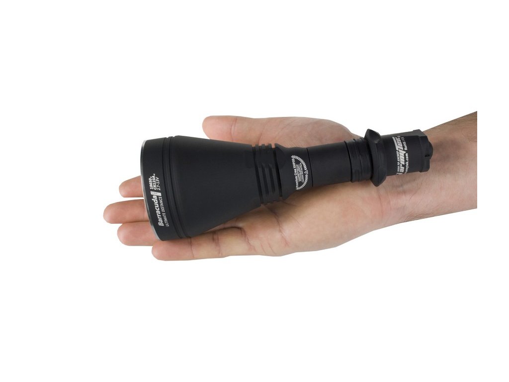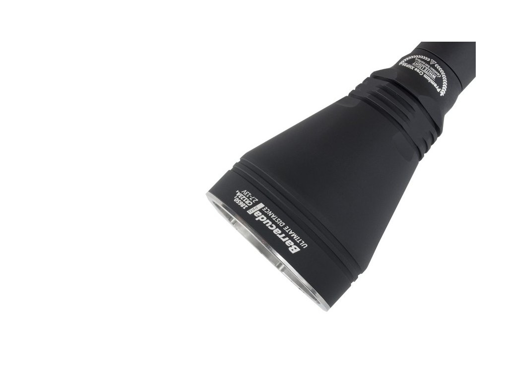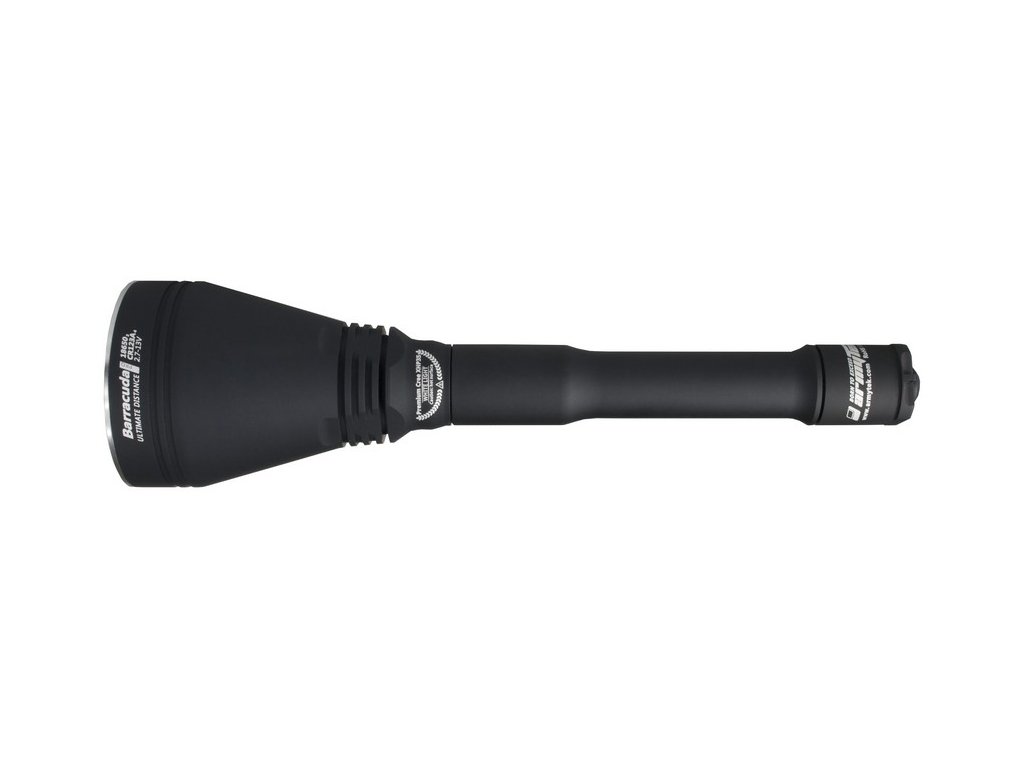 Najnovšia verzia extrémne silného svietidla Armytek Barracuda Pro je impozantné svietidlo, vhodné hlavne pre poľovné účely, ale svoje uplatnenie si nájde aj pre priemyselné, vojenské a bezpečnostné využitie. Barracuda Pro má veľmi hlboký reflektor, vďaka čomu má výrazné ohnisko s užším periférnym kužeľom a veľkým dosahom svetla. Oproti predošlej verzii je telo svietidla užšie, čiže bolo dosiahnuté lepšie a príjemnejšie držanie. Sklíčko svietidla je vyrobené z optického skla, ktoré má antireflexnú vrstvu a je odolná voči poškriabaniu s priehľadnosťou skla až 98-99%. Ako zdroj svetla používa novú extrémne výkonnú Cree XHP35 HI LED, ktorá napriek svojej malej veľkosti, vyžaruje ohromný lúč svetla, ktorého dosah je až 800m. Max. výstup LED je neuveriteľných 1850lm, po stratách na optike je čistý výkon 1500lm ANSI. V porovnaní s verziou 2, je dodávaná v novom ergonomickom a kompaktnom dizajne v úchopovej časti svietidla na 2x 18650 akumulátor, čo robí zo svietidla Barracuda Pro praktické svietidlo. Jeho možné napájať 2x 18650 3,7V akumulátorom, alebo iba aj jedným 18650 3,7V (plný výkon je dosiahnutý len pri použití 2x 18650 3,7V akumulátora). Podobne je to aj pri napájaní 4x CR123A batériami - 100% výkon. Je možné použijeť aj dve batérie, no bez 100% výkonu. Jednoducho vymeníte dlhšie telo svietidla za kratšie. Svietidlo sa neprehrieva ani pri plnom výkone v izbovej teplote, čo znamená že LED nieje ani z ďaleka v pásme ohrozenia. Pri pritiahnutom reflektore svieti výlučne naplno 1850lm (1500lm ANSI), čo je veľmi dôležité. Ak chcete zmeniť režim, musíte povoliť reflektor o asi štvrť otáčky a máte k dispozícii ďalších 8 režimov: 800lm, 350lm, 150lm, 30lm, 1,7lm, 0,15lm a zábleskový režim STROBE 2 a STROBE 1. Vodotesný je až do hľbky 50 metrov - vhodné aj pre potápanie. Tento model sa radí do kategórie Throw (veľmi silný vrhač svetla). Armytek Barracuda Pro je oproti svojmu predchodcovi kompaktnejšia a praktickejšia, no so zvýšeným svetelným tokom, no s rovnakou neporovnateľnou silou na ktorú ste boli zvyknutý od spoločnosti Armytek.