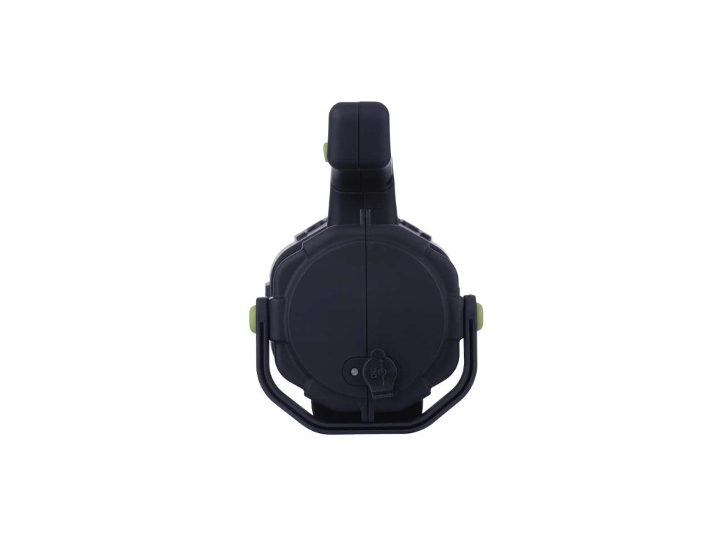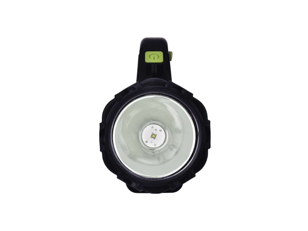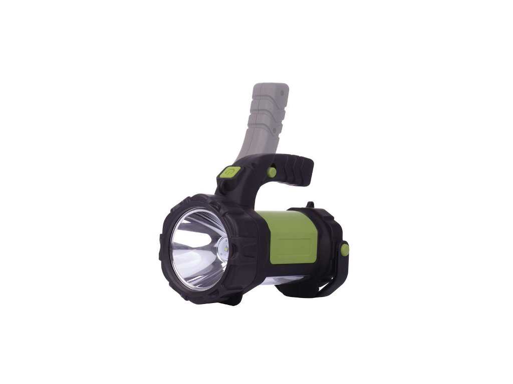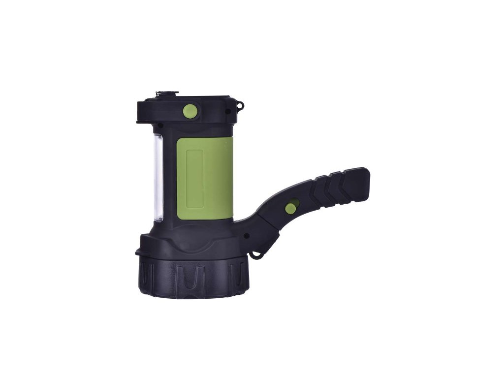 Univerzálne nabíjacie svietidlo aj pre domáce použitie so vstavaným akumulátorom, odolné proti nešetrnému zaobchádzaniu (prach, špina). Výkonná 5W CREE LED zaručuje dostatočne silnú svietivosť. Dosah svetla je až 350 m. Svietidlo má možnosť dobíjania vstavaného Li-ion akumulátora 3,7V 2000 mAh v tele svietidla pomocou adaptéra na 230V, alebo autoadaptéra na 12V. Z boku tela svietidla je umiestnený druhý reflektor s výkonnou 1x COB LED, ktorý využijete napr. pri kempovamí. Rukoväť svietidla je možné otočiť o 360 stupňov. Svietidlo pracuje v 4 svetelných režimoch - 100%, 50%, svietenie 1x bočnej COB LED, STROBE. Doba prevádzky je 3 hodiny na plný výkon. Doba nabíjania akumulátora je 7hod. Nabíjanie prípadne dobíjanie z napájacej siete 230 V/50 Hz alebo z automobilovej zásuvky 12 V. V prípade, že má svietidlo vybitý akumulátor môžete svietidlom svietiť pomocou napájacieho zdroja alebo z automobilu pomocou autoadaptéru.
