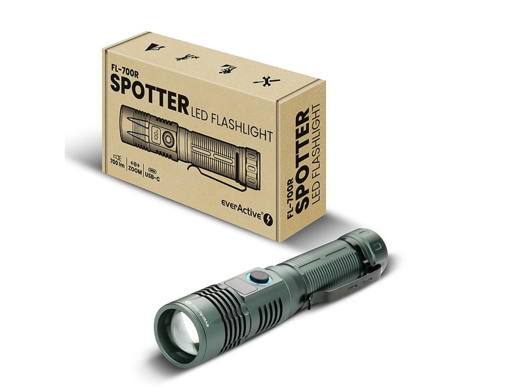 Model FL-700R Spotter predstavuje výkonné ručné LED svietidlo kombinujúce spoľahlivosť, moderné napájanie a profesionálne funkcie. Ideálne riešenie pre profesionálne nasadenie (kontroly, hliadky, technické práce) ako aj pre outdoor či domácu bezpečnosť.