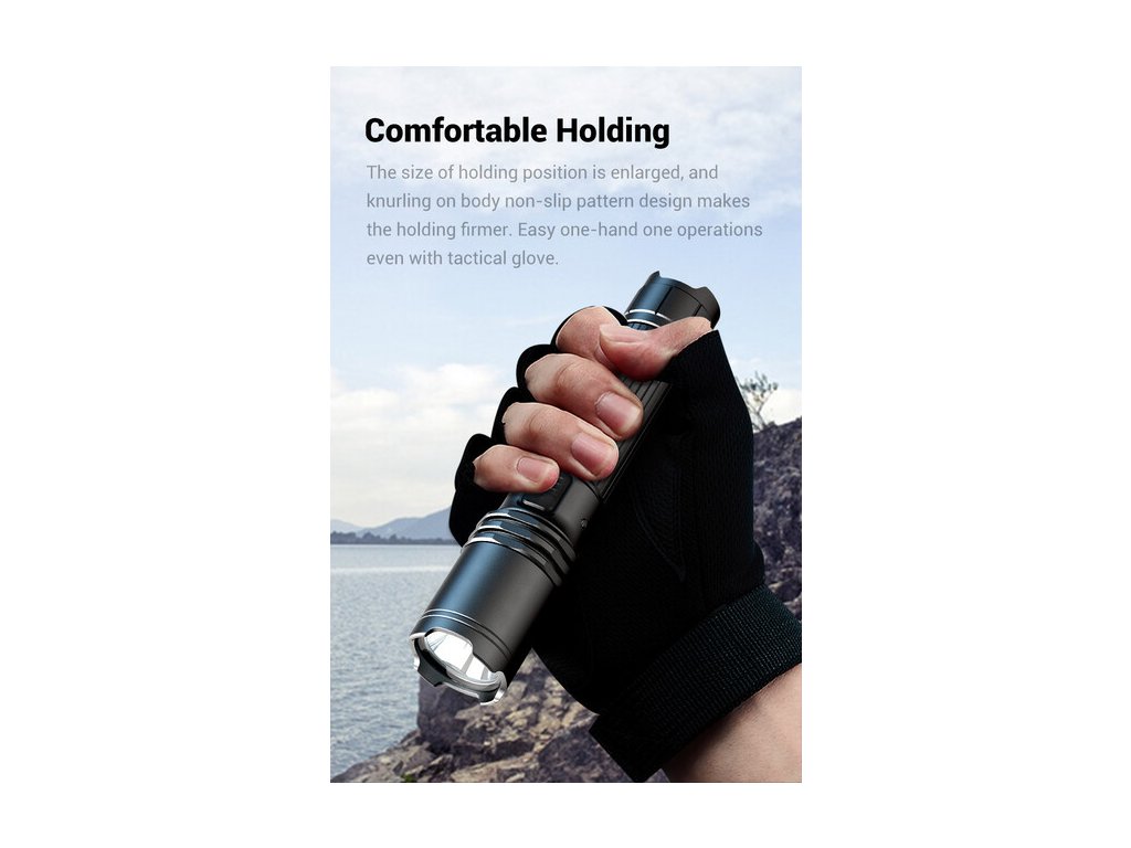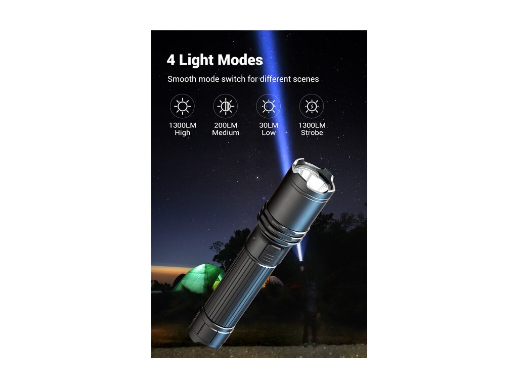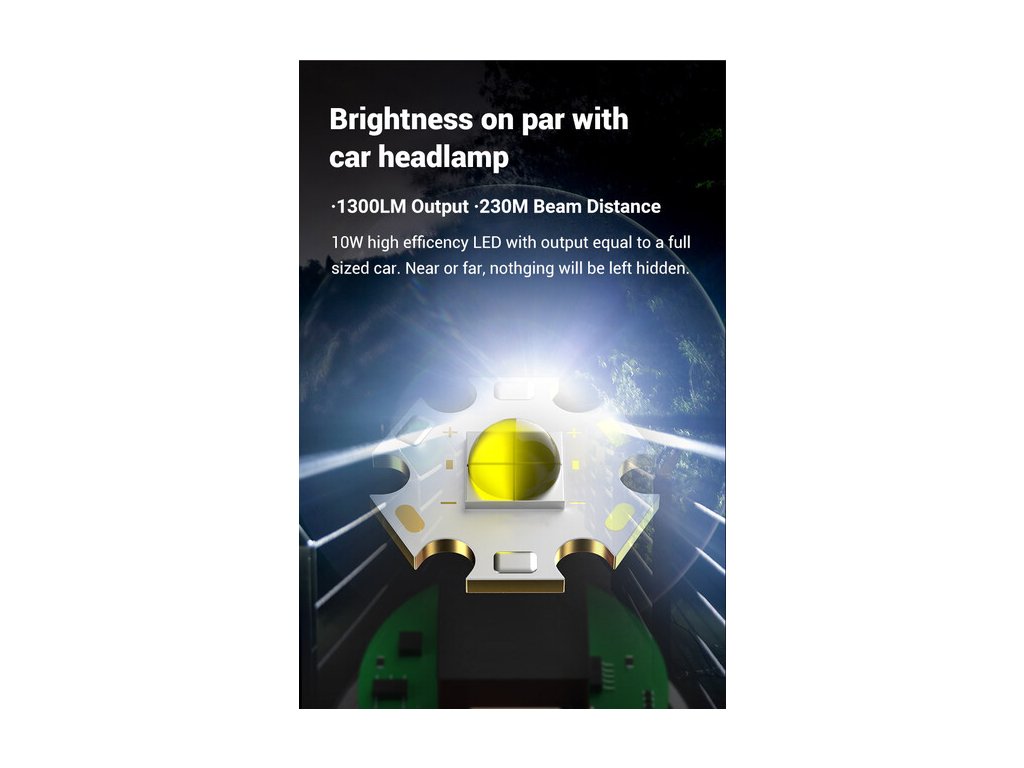 Výkonná 1x Cree XP-L2 LED v dennom odtieni bieleho svetla. Maximálnym svetelným výstup bol zvýšený na 1300lm. Dosvieti na vzdialenosť 230m. Indikácia aktuálneho stavu nabíjania/ vybíjania akumulátora.