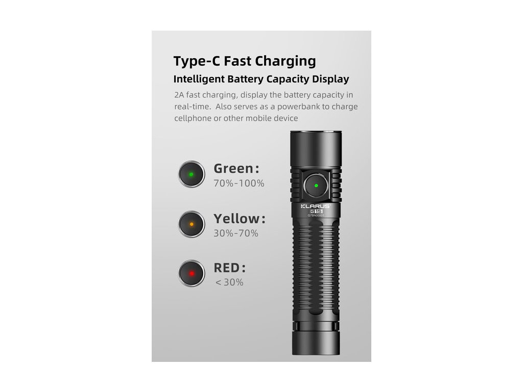 LED Baterka Klarus G15 V2 + Li-ion 21700 5000mAh 15A 3,6V, USB-C nabíjateľná