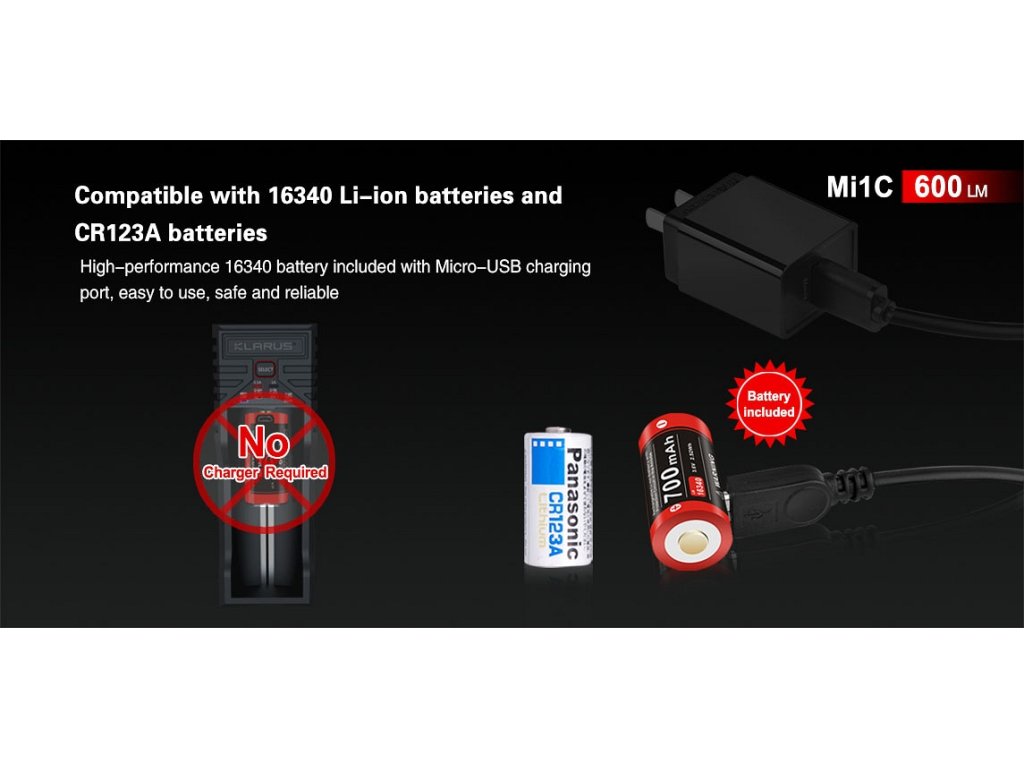 LED Baterka Klarus Mi1C + 1x Klarus 16340 700mAh Micro USBČierna