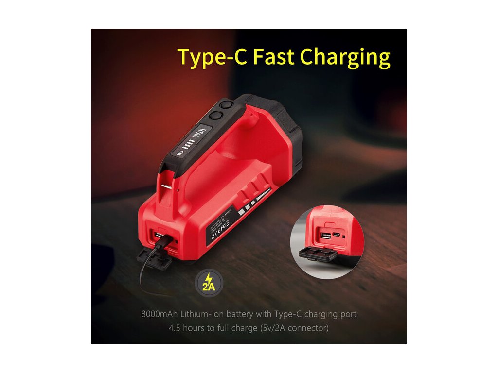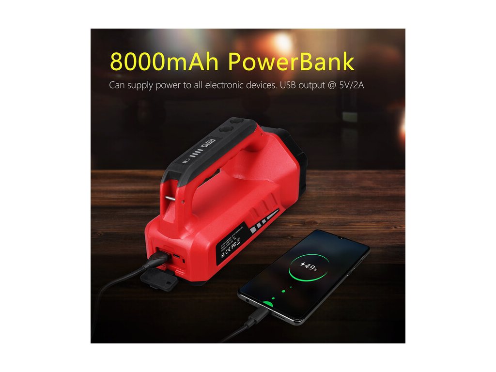 Svietidlo so vstavaným Li-ion akumulátorom 8000mAh, nabíjaci USB-C kábel.