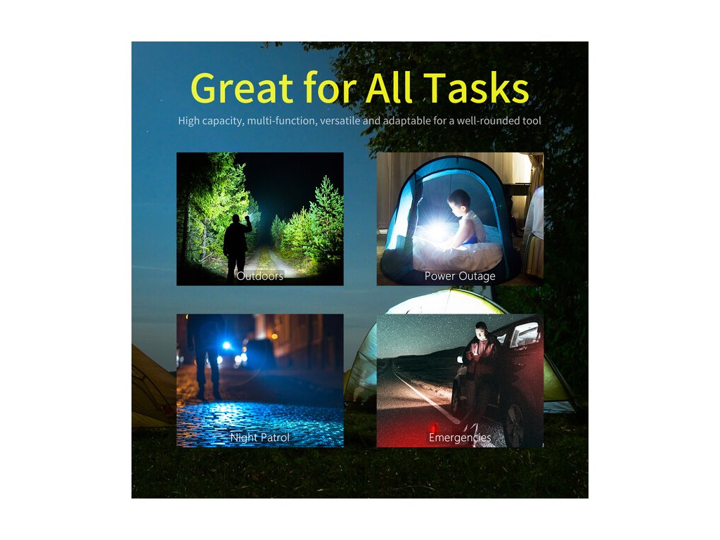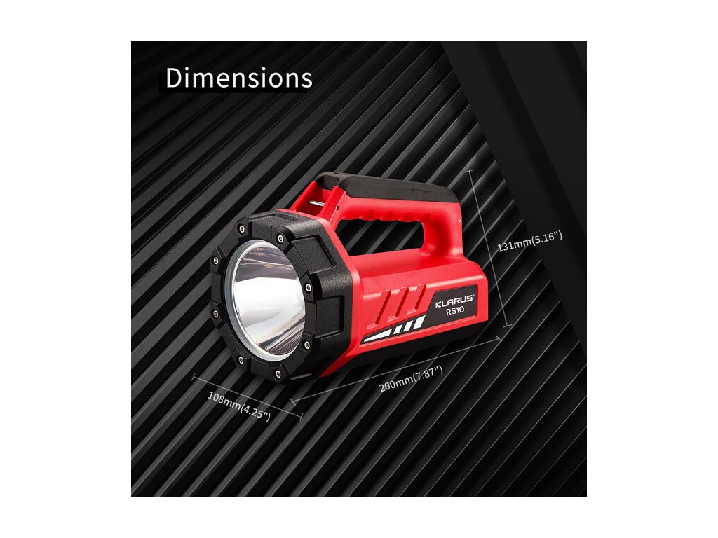 Klarus RS10 je všestranne univerzálne, USB-C nabíjateľné svietidlo so vstavaným Li-ion akumulátorom s kapacitou 8000mAh, ideálne pre outdoorové alebo pracovné nasadenie. V hlave svietidla je osadená výkonná Luminus SST40W-P2 LED, so svetelným výkonom 800lm v studenom odtieni bieleho svetla CW a dosahom až 532m. Na tele svietidla sa nachádza aj bočná CREE COB LED, ktorá slúži ako pracovné svetlo v dennom odtieni DW a dosvieti na vzdialenosť 28m. Nachádzajú sa tu aj červené SMD LED, pre nerušené červené svietenie a červené blikanie, na vzdialenosť 7m. Osadený vysokokapacitný Li-ion akumulátor so spomínanou kapacitou 8000mAh, je zložený zo 4x 18650 2000mAh. Nabíja sa priamo v tele svietidla, pomocou nabíjacieho konektora USB-C, umiestneného pod gumenou krytkou v zadnej časti tela svietidla. Okrem neho sa tu nachádza aj USB výstup s funkciou externého nabíjania, tzv. Powerbank. Vaše zariadenie, ako napr. mobilný telefón, budete mať tak stále nabitý, aj pri dlhšom pobyte v prírode, bez možnosti nabitia zariadenia z el. siete. Oba nabíjacie konektory, podporujú rýchle nabíjanie 2A. To umožňuje plné nabitie vstavaného Li-ion aku. V tele svietidla, za cca 4,5hod. V hlave svietidla je osadená aj inteligentná vnútorná viacnásobná ochrana, proti prebitiu a nadmernému vybitiu. Ovládanie svietidla, zabezpečujú tlačidlá, umiestnené na vrchnej strane, pevnej rukoväte s jej pogumovanou hornou časťou. Predná CW LED, ponúka 3 režimy svietenia: Turbo 100%-66%, 50%, 20%. Bočná COB DW LED 2 režimy svietenia: 40% a 100% svietenie. Červené bočné SMD LED, ponúkajú 2 režimy svietenia: 100% červené svietenie 25lm a 1 zábleskový režim Strobe (Blikanie) 100%. Telo svietidla je vyrobené z kvalitného tvrdeného ABS plastu. RS10 ponúka vodeodolný štandard IPX-6 a odoláva pádom z výšky 1m. Na vrchnej strane rukoväte (rúčky) sa nachádza 2x úchyt, pre uchytenie popruhu a nosenie svietidla cez plece (popruh cez plece, nie je obsahom balenia). Na spodnej strane sa nachádza závit pre pripevnenie k statívu (tripod), čím je možné vytvoriť statické svietenie. Klarus RS10 je určené pre všestranné, univerzálne využitie v každej oblasti!