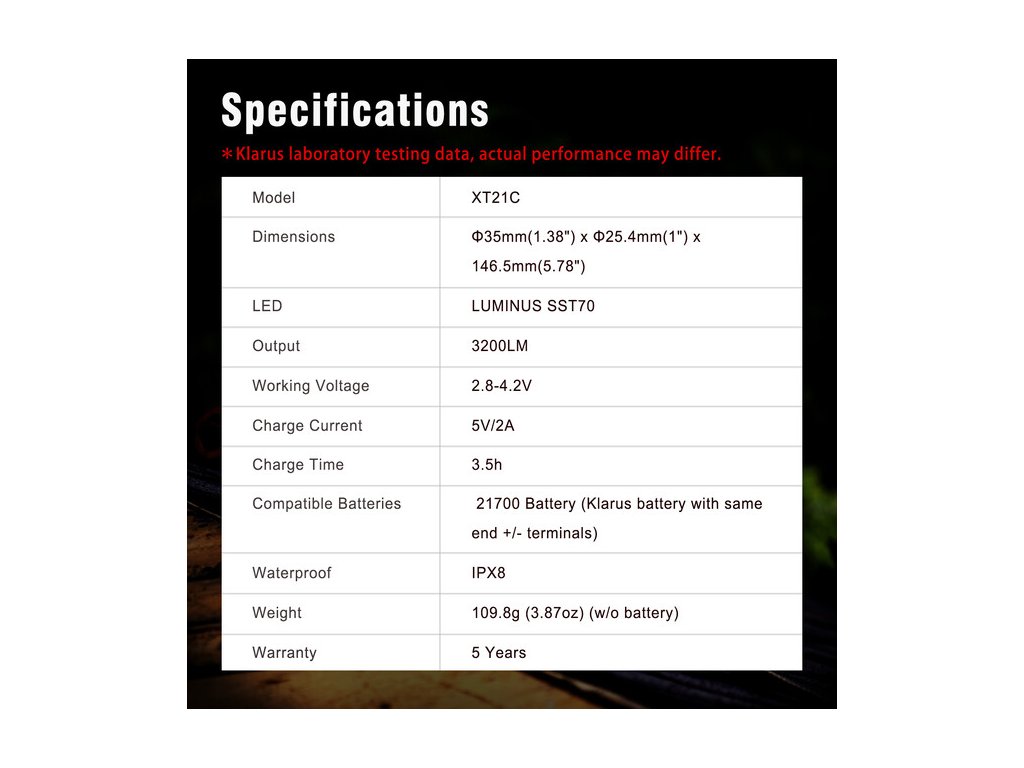 Ak budete potrebovať náhradný akumulátor pre toto svietidlo, musíte použiť iba tento špeciálny typ 21700 akumulátora Klarus 21GT-E50, so špeciálnym obojpólovým plusovým pólom, iné akumulátory 21700 nie sú kompatibilné!