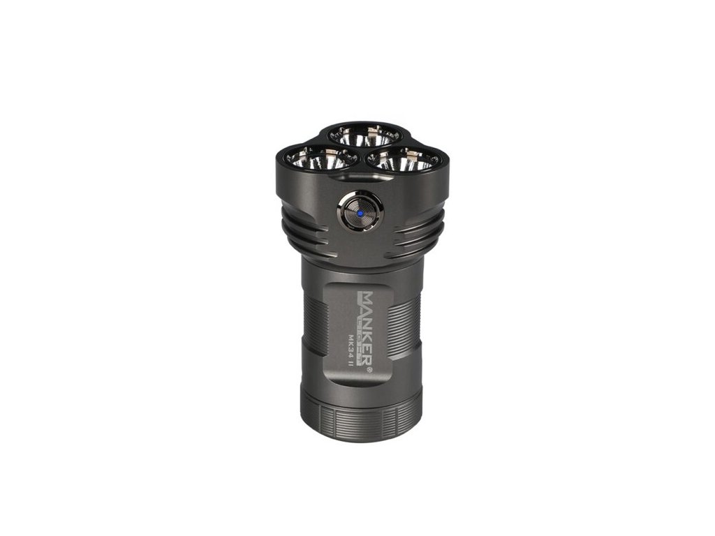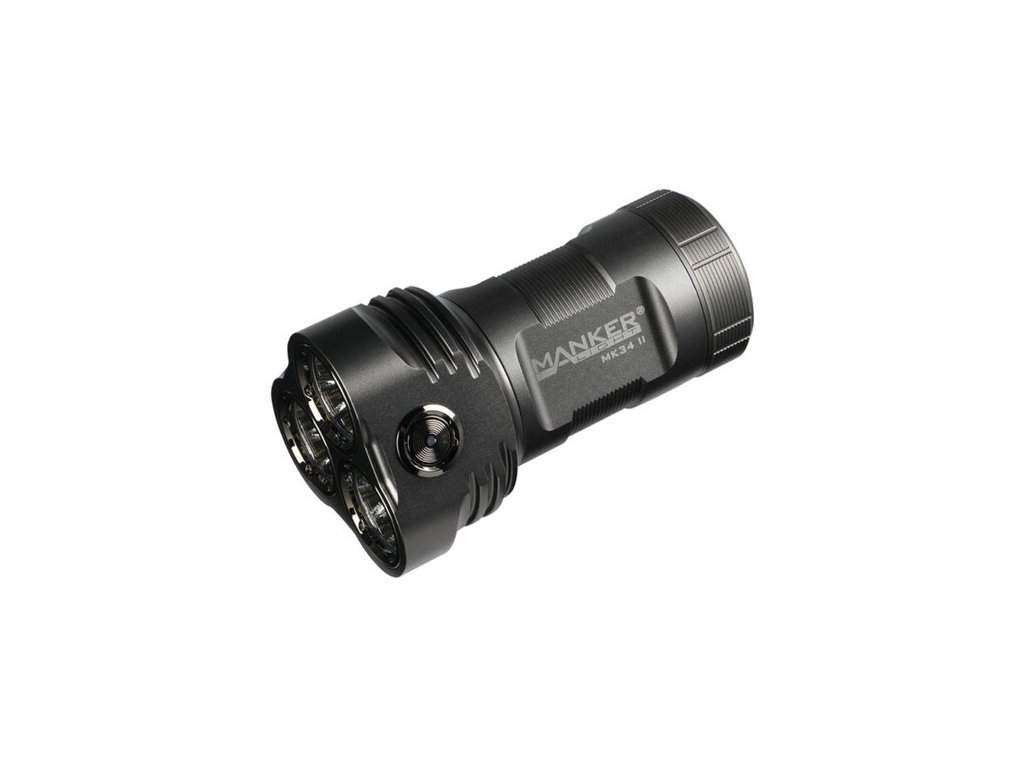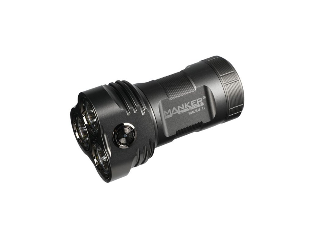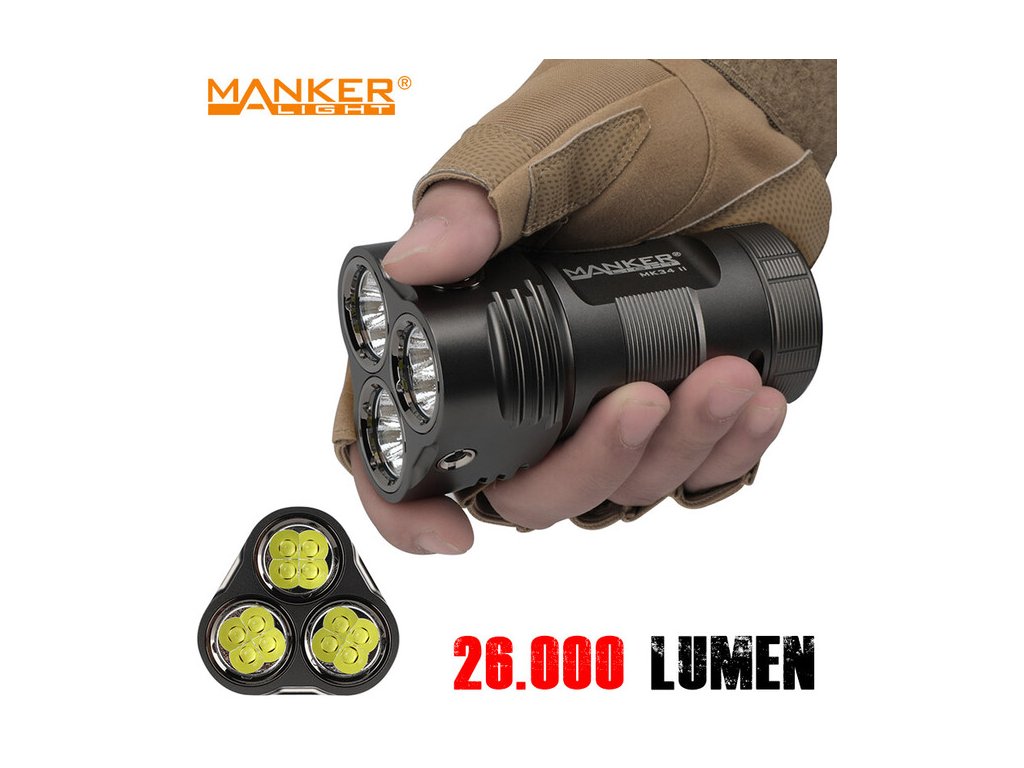 Aktualizovaný model ultra výkonného svietidla Manker MK34 II, má teraz parametre až 26 000lm s dosvitom 283m, generovaných 12x LED čipmi CREE XHP50.2. MK34 II je určená na vyhľadávanie, pre strážne a záchranné služby, políciu alebo pre poľovníctvo, vhodná je však aj na univerzálne použitie okolo vášho obydlia. Je napájaná 3ks Li-ion dobíjacími akumulátormi 18650 s vysokým prúdovým odberom. Nabíjanie prebieha mimo svietidla v externej nabíjačke (nabíjačka nie je súčasťou balenia). Ohromný výkon a stredný dosvit znamenajú veľmi široké pokrytie svetla pred vami – urobte si z noci deň! Optiku tvorí sústava troch quad-core LED na mikro orange-peel reflektoroch, kryté tvrdenou ultra čírou sklenenou šošovkou s antireflexnou vrstvou. Vodeodolnosť najvyššej triedy IPX8 (úplný ponor do 2 metrov hĺbky). Telo svietidla je vyrobené z leteckej zliatiny hliníka a povrch eloxovaný v triede HAIII military, pre vysokú odolnosť proti mechanickému poškodeniu a oderu. Ovláda sa nerezovým spínačom na hlave svietidla. V tele je zabudovaný závit pre umiestnenie na tripod a obsahuje aj možnosť uchytenia na zápästné pútko pre zaistenie na ruke. Rovná zadná plocha umožňuje vertikálne postavenie svietidla, ako svieca. Elektronika obsahuje tiež indikáciu stavu batérie, účinnú termoreguláciu, elektronický zámok tlačidla proti náhodnému zopnutiu vo vrecku alebo batohu, NON-PWM okruh (konštantné svietenie bez mikro prerušovania), ochranu proti nesprávnemu vloženiu batérií, ochranu proti podbitiu, pamäť na posledný použitý režim a ďalšie. UI ponúka 7 základných úrovní svitu a jeden špeciálny režim STROBE. Je možný priamy vstup na Turbo alebo Moonlight režim.