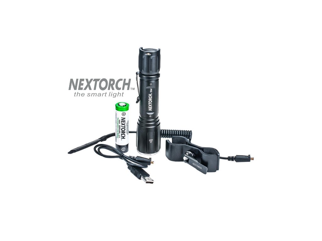 Svietidlo, montáž na zbraň, diaľková spúšť, nabíjací Li-ion akumulátor Nextorch 18650 s kapacitou 2600mAh, nabíjací USB kábel. Balenie obsahuje akumulátor/ batériu.