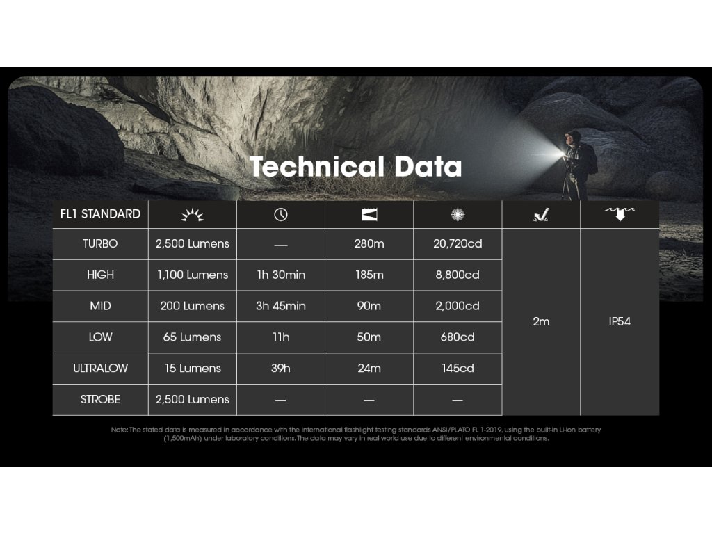 - ULTRALOW: 15 lm / 39 h / 24 m / 145 cd