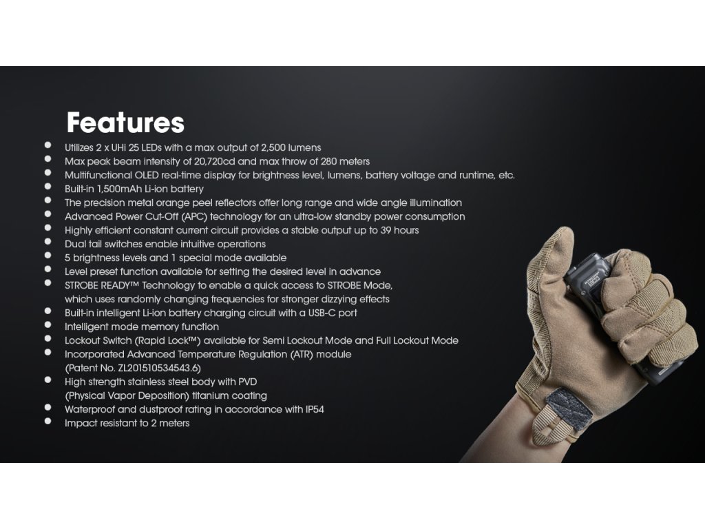 - TURBO: 2500 lm / 280 m / 20 720 cd