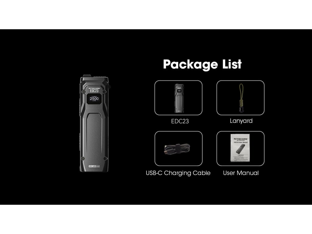 LED Baterka Nitecore EDC23 SABER, vstavaný Li-ion 1500mAh, USB-C nabíjateľné