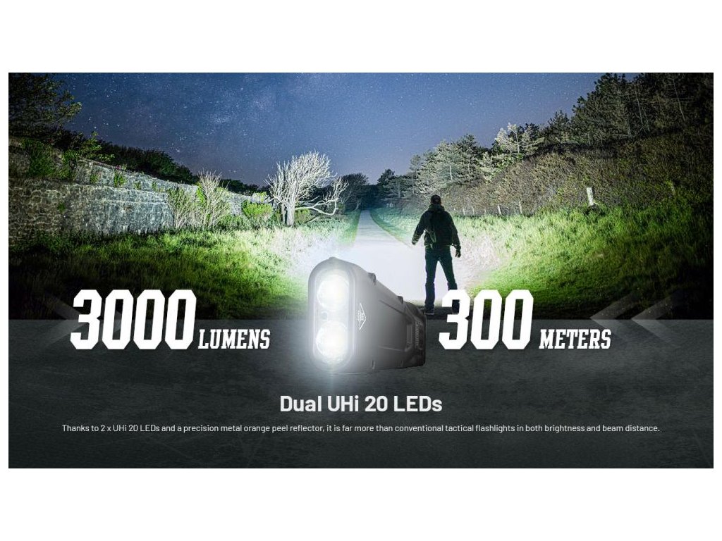 - Používa vysoko kvalitné LED diódy 2x UHi 20 LED- Maximálny výkon až 3000 lúmenov