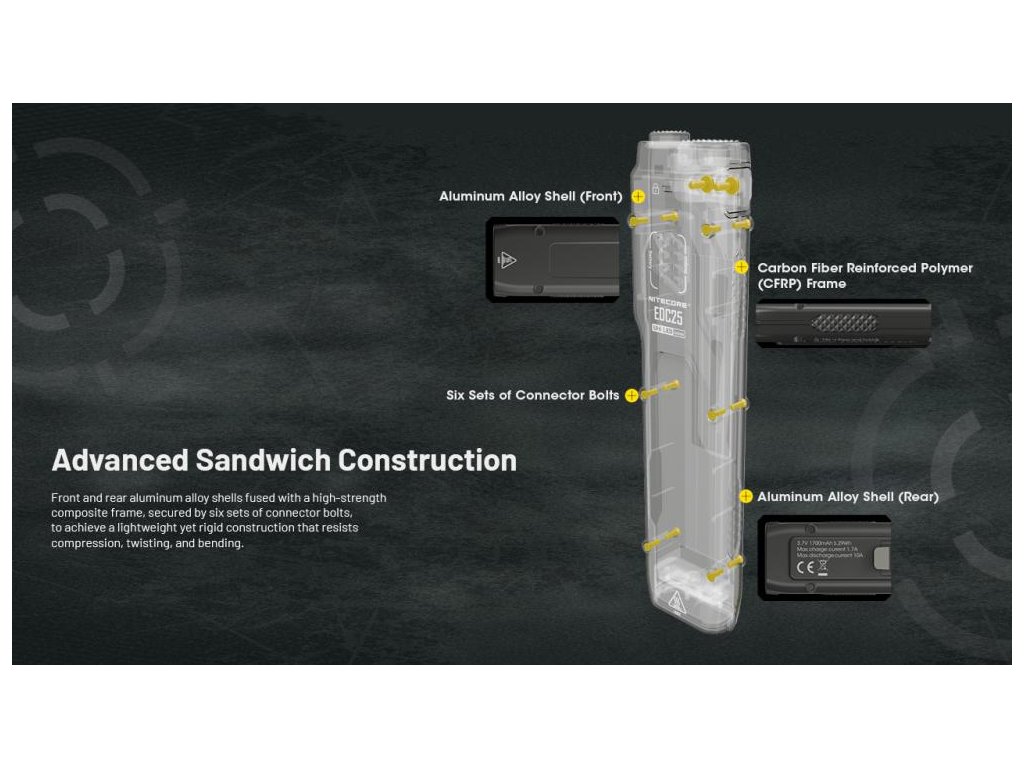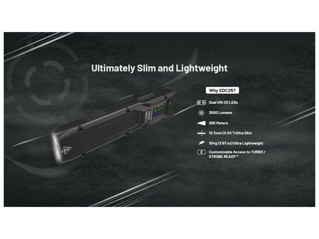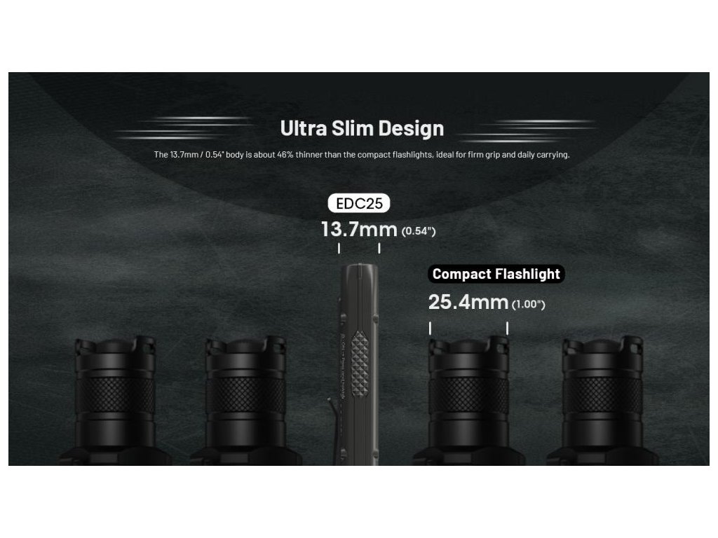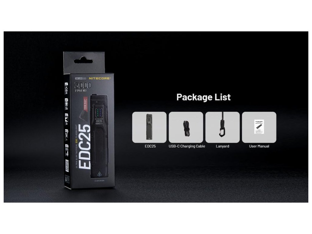 LED Baterka Nitecore EDC25, vstavaný Li-ion aku. 1700mAh, USB-C nabíjateľná