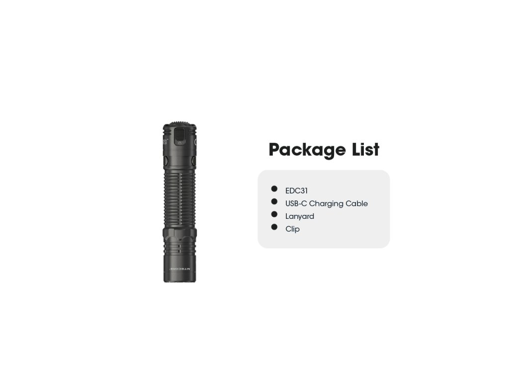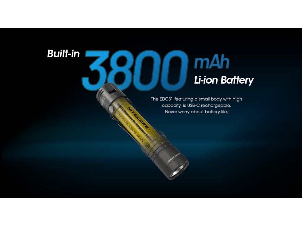 LED Baterka Nitecore EDC31, vstavaný Li-ion aku. 3800mAh, USB-C nabíjateľná