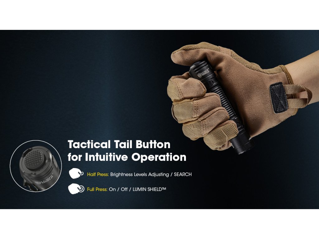 Ovládanie: Taktické chvostové tlačidlo s Rapid Lock™ systémom