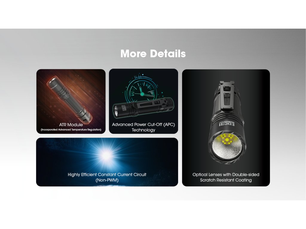🏞️ Predstavte si situáciu - prechádzate sa večer parkom, keď si zrazu všimnete podozrivý pohyb v kríkoch. Jedným pohybom aktivujete funkciu LUMIN SHIELD™, ktorá okamžite vytvorí "svetelnú stenu" s oslnivými 3500 lumenmi, čím poskytne účinnú obrannú bariéru, ktorá dokáže dočasne oslepiť prípadného útočníka. Pri návrate domov v tme môžete využiť režim SEARCH na osvetlenie cesty do diaľky, alebo niektorý z nižších režimov pre bežné použitie s výdržou až 57 hodín. Jedna svietidlo, nekonečné možnosti využitia.