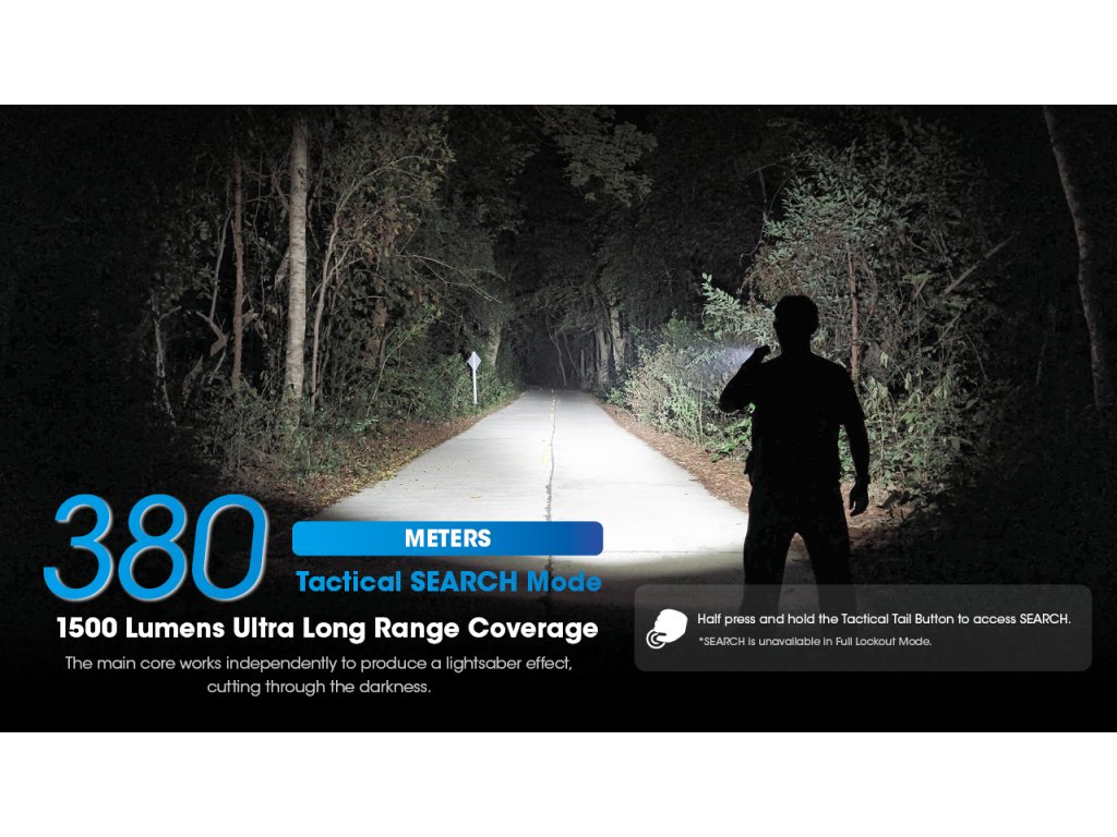 - SPOTLIGHT (SEARCH): 1500 lm, 380 m