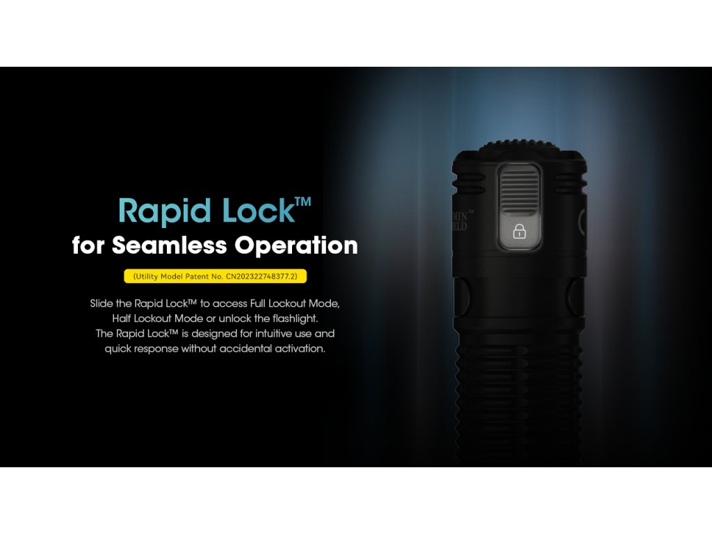 🔆 Revolučná 9-jadrová UHi 20 MAX LED technológia s výkonom 3500 lumenov a dosvitom 380 metrov 🛡️ Obranný systém LUMIN SHIELD™ vytvárajúci "svetelnú stenu" pre maximálnu ochranu v núdzových situáciách 🔒 Rapid Lock™ systém s dvojitým zamykaním pre bezpečné nosenie a rýchly prístup k taktickým funkciám ⚡ Vysokoefektívny konštantný prúdový okruh zabezpečujúci stabilný svetelný výkon 🔋 Integrovaná 3800 mAh Li-ion batéria s výdržou až 57 hodín na najnižšom režime 📱 USB-C nabíjanie s indikátorom stavu batérie pre pohodlnú kontrolu zvyšnej kapacity 💧 Profesionálna odolnosť s certifikáciou IP68 (vodotesnosť do 2 metrov) a nárazuvzdornosť z výšky 2 metrov 🤏 Ultra kompaktné rozmery (113,2 mm) a nízka hmotnosť (100 g) pre pohodlné každodenné nosenie