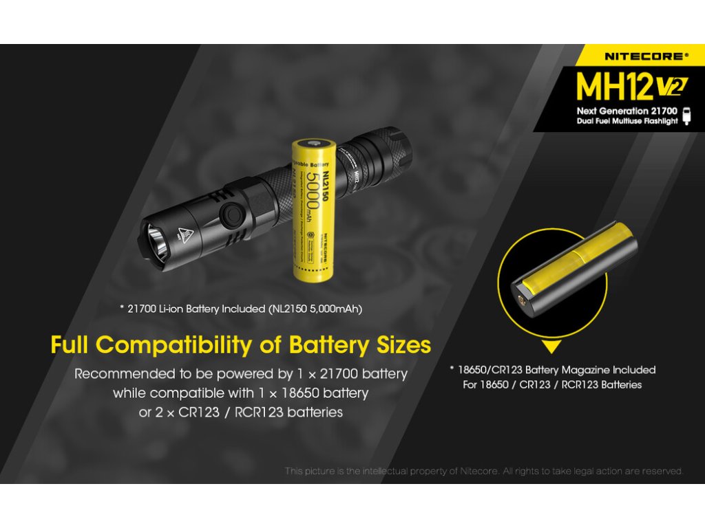 LED Baterka Nitecore MH12 v2+1x Li-ion 21700 5000mAh 1200lm, USB-C nabíjateľná