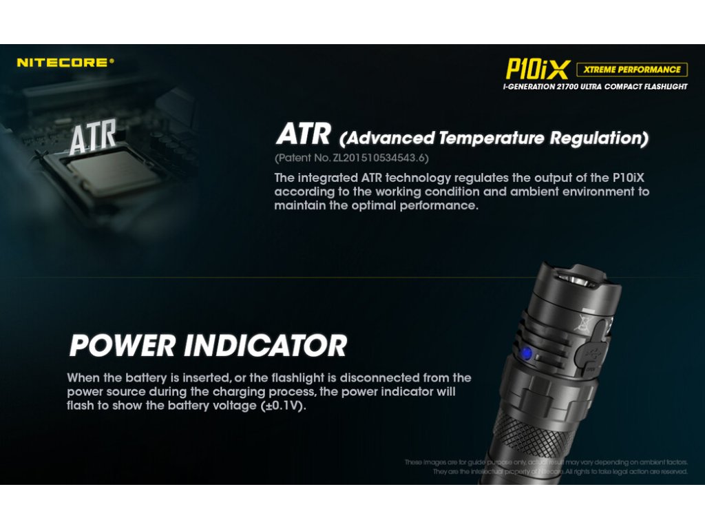 Funkcia tepelnej ochrany: P10iX má funkciu tepelnej ochrany ATR. Automaticky zníži svoj výkon, aby nedošlo k prehriatiu pri dlhodobom svietení v TURBO 100%.