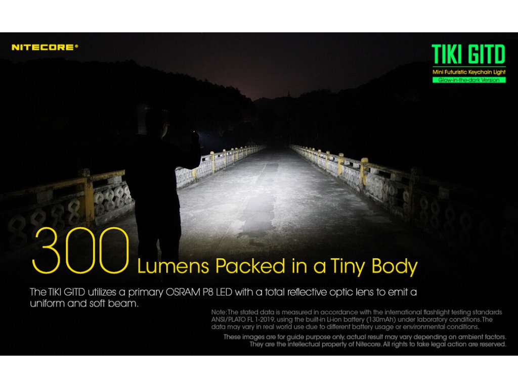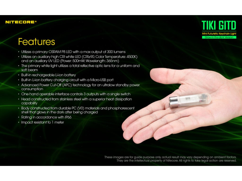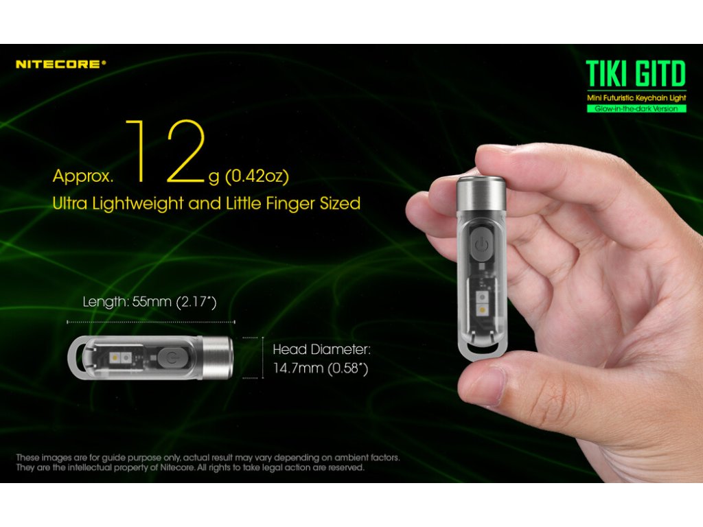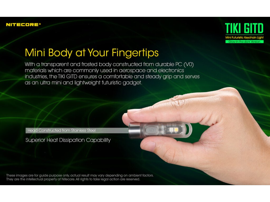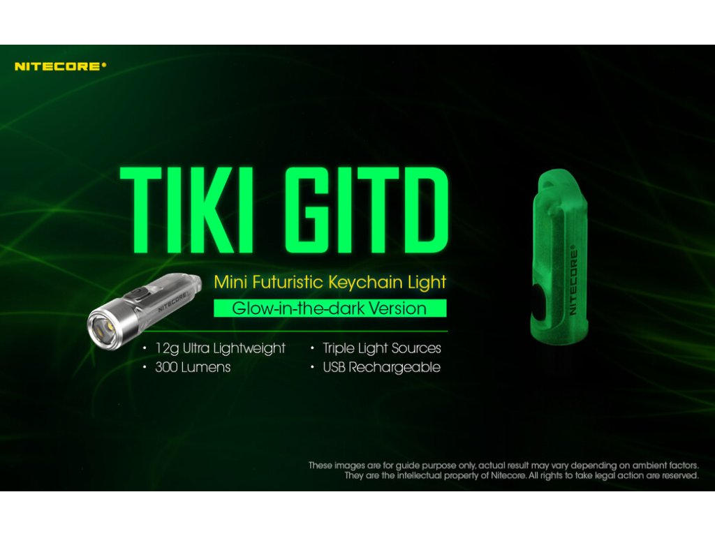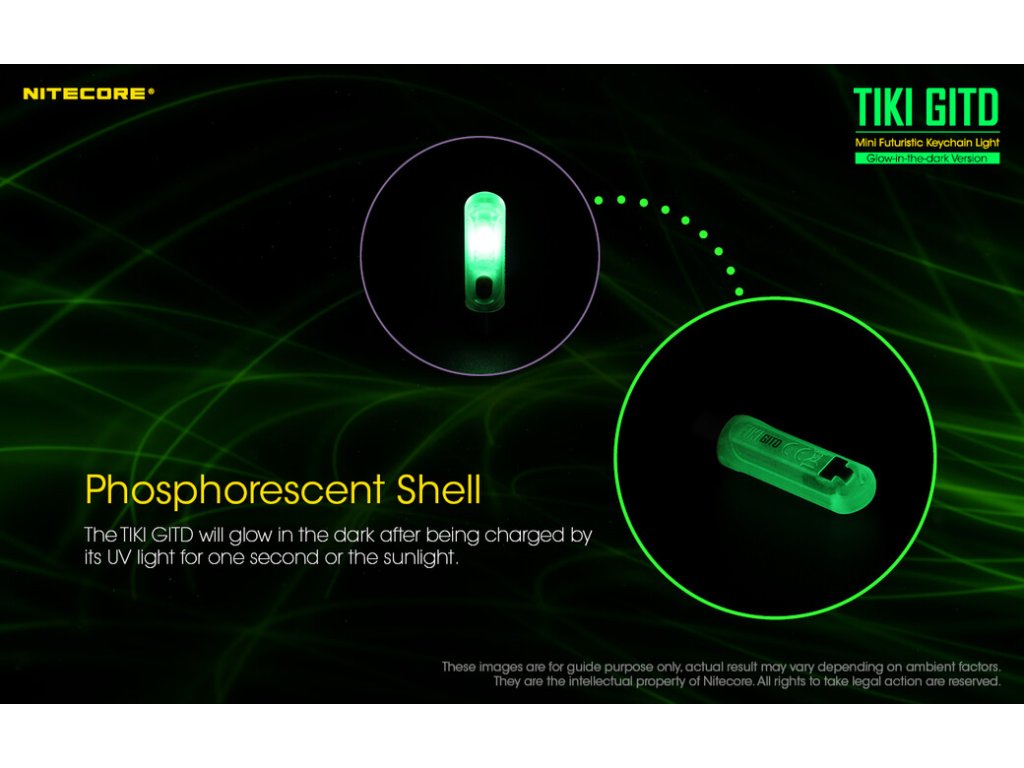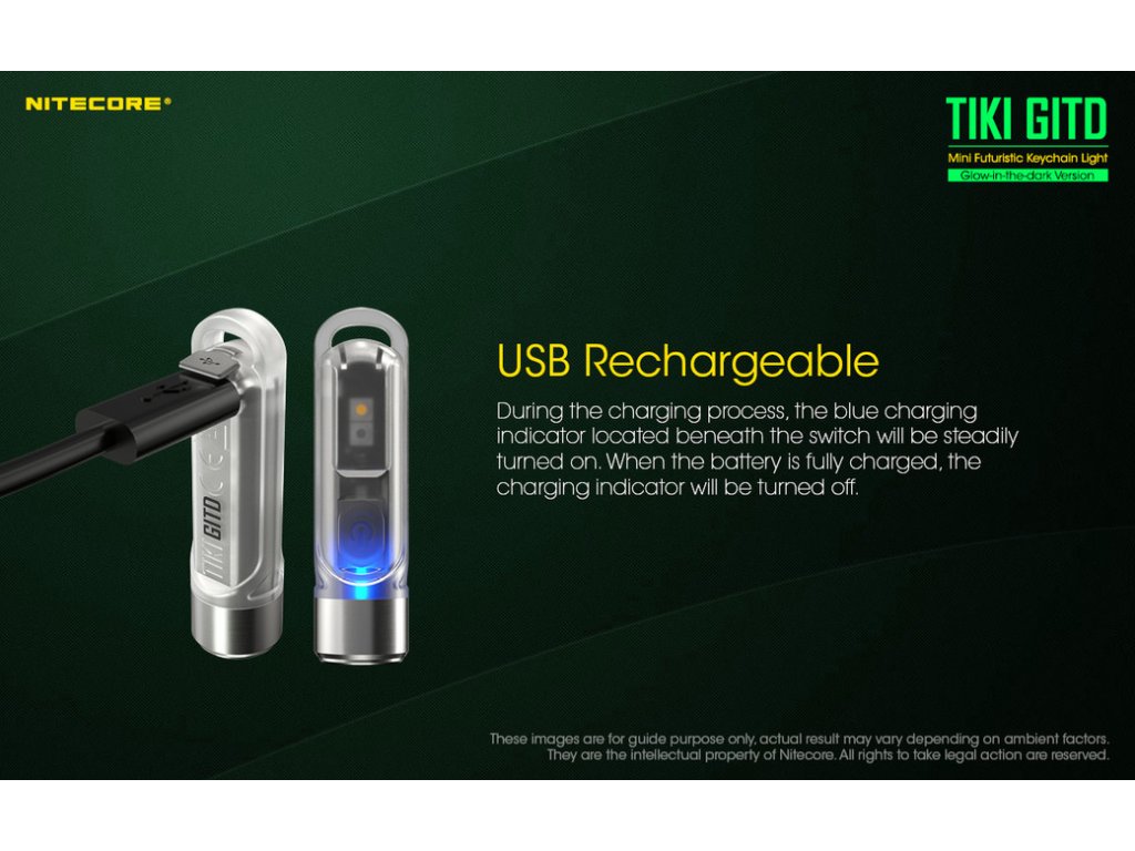 LED kľúčenka Nitecore TIKI GITD, Fosforeskujúce telo, Micro-USB nabíjateľná