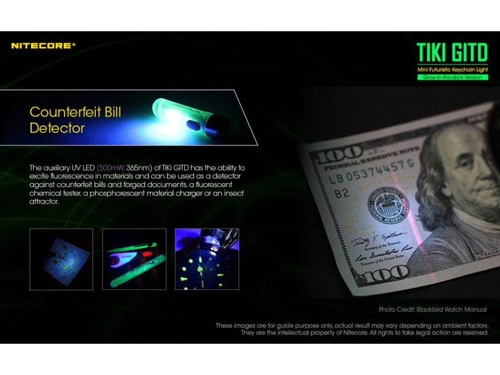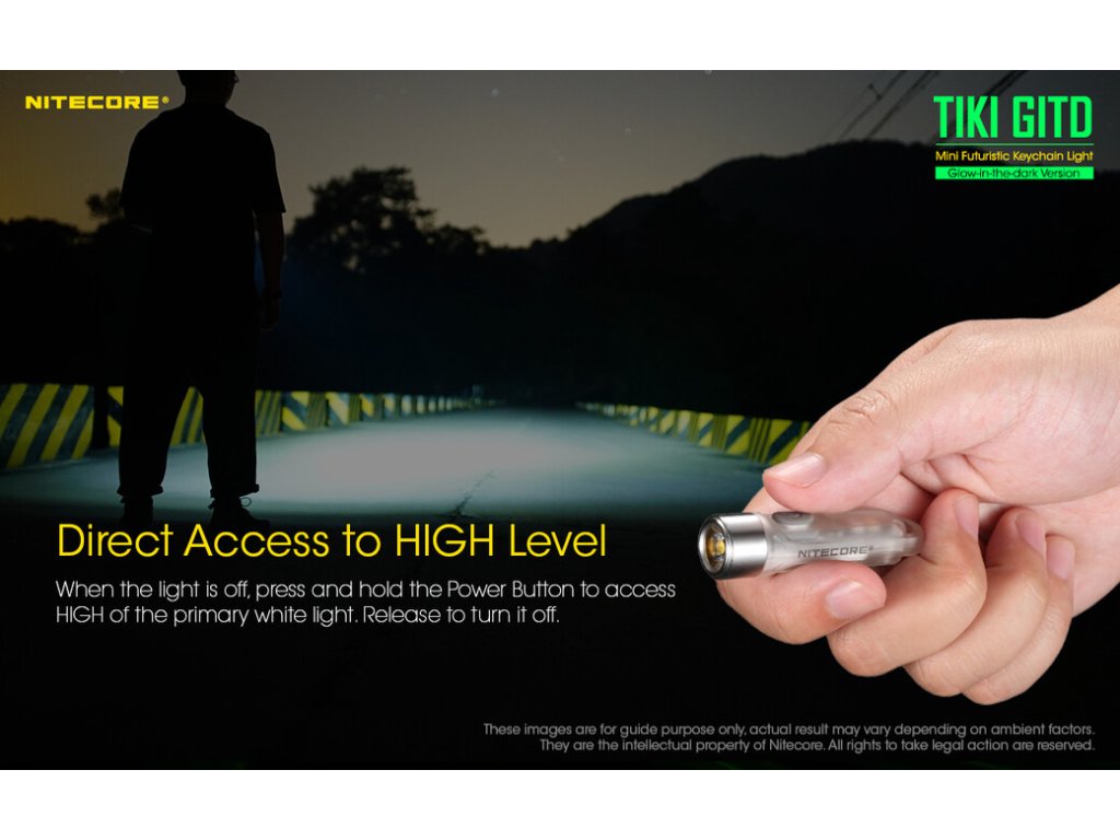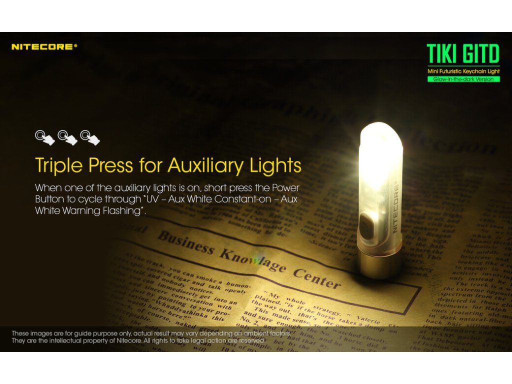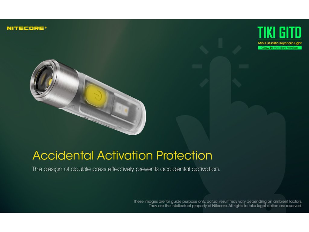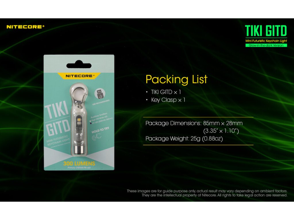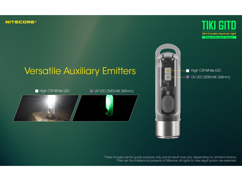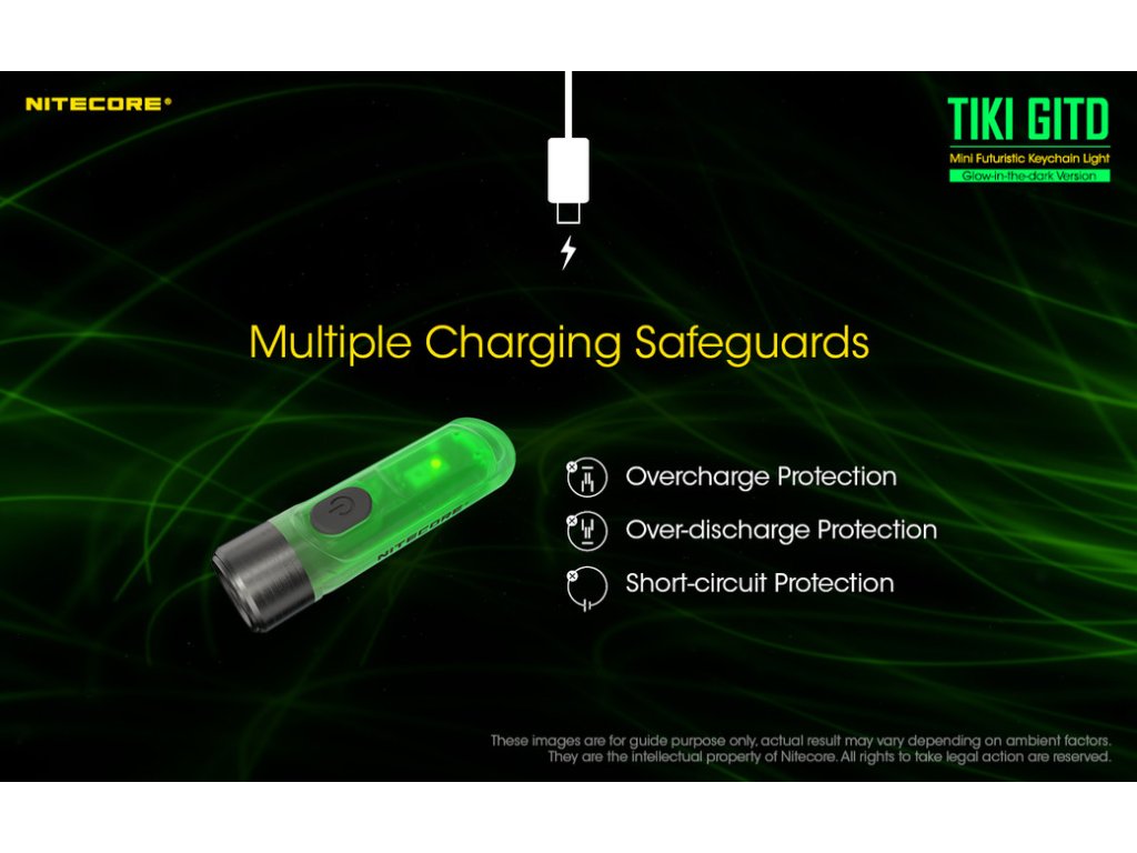 LED kľúčenka Nitecore TIKI GITD, Fosforeskujúce telo, Micro-USB nabíjateľná