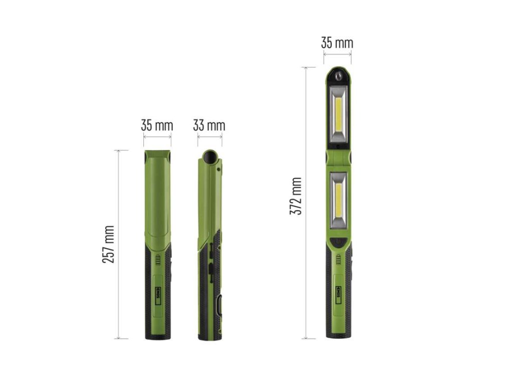 | Doba svietenia detail: | 1× COB LED 100 % – 3,5 h, 2× COB LED 100 % – 2,5 h, LED 100 % – 10 h |