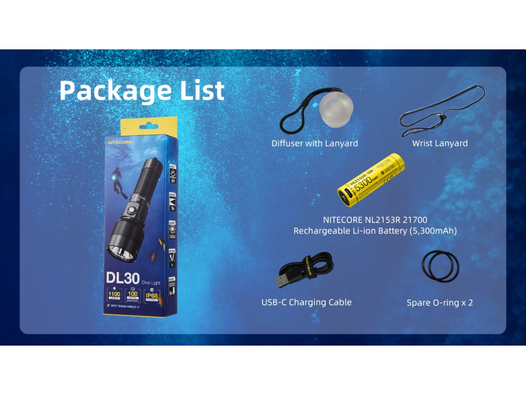 🔦 1× NITECORE DL30 Dive Light (100m submersible certified)