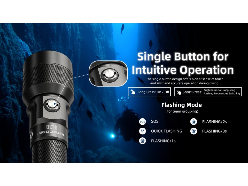 Predstavte si moment, keď sa potápate v krištálovo čistých vodách Chorvátska alebo objavujete tmavé tunely vrakovísk či jaskynné systémy. Práve vtedy potrebujete spoľahlivé svetlo na potápanie, na ktoré sa môžete stopercentne spoľahnúť. NITECORE DL30 z našej profesionálnej potápačskej série vám poskytne presne to - výkonné osvetlenie s 1,100 lúmenmi a certifikovaným dosahom 788 metrov. Alternatíva k drahým značkám vytvorená pre náročných slovenských potápačov, ktorí si nenechajú ujsť žiadne dobrodružstvo – od chladných vôd Seneckých jazier až po tropické koralové útesy Maledivy a hlbokomorské ponory.