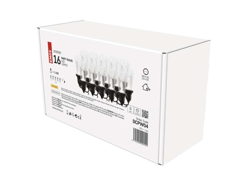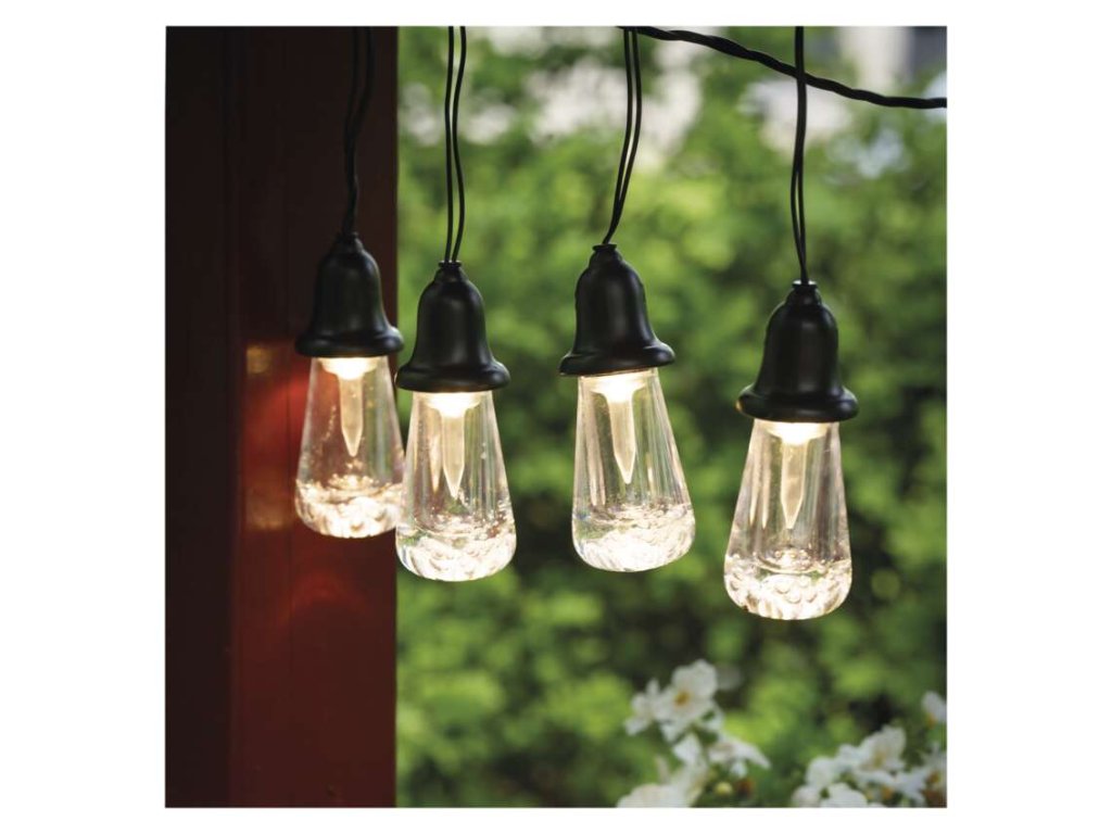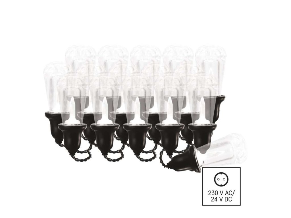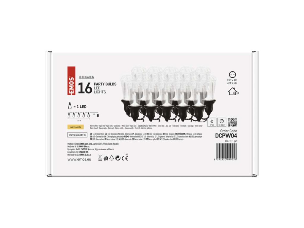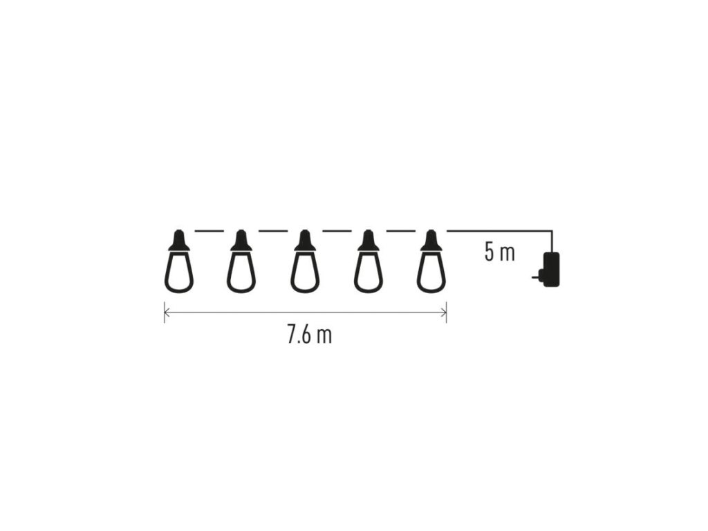 LED svetelná reťaz – 16x párty žiarovky číre, 7,6 m, vonkajšia aj vnútorná, teplá biela