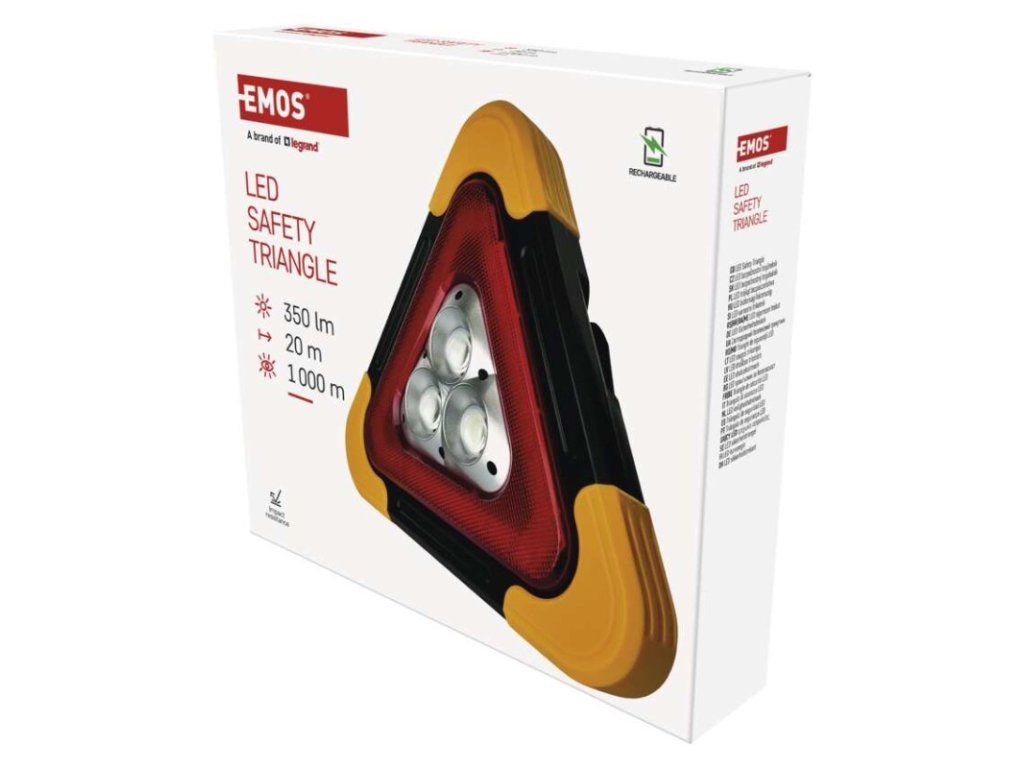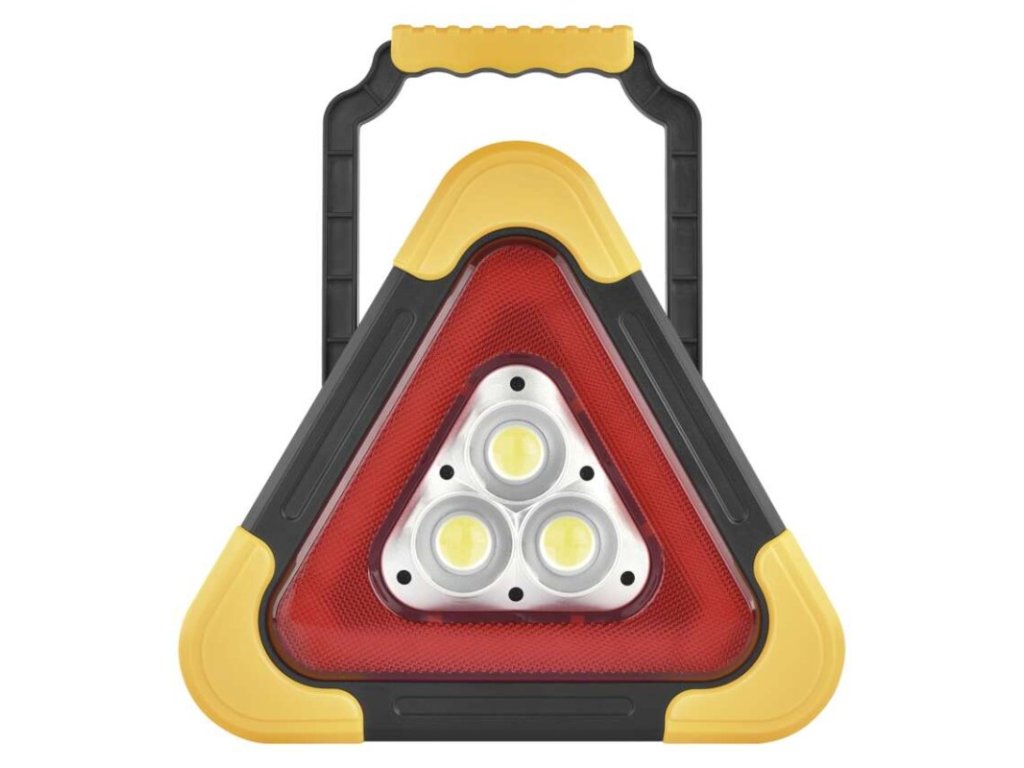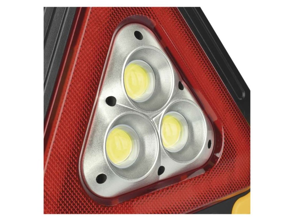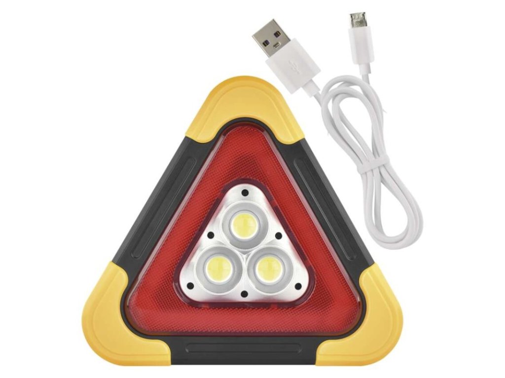 LED výstražný trojuholník, dobíjateľný, COB LED + červená LED