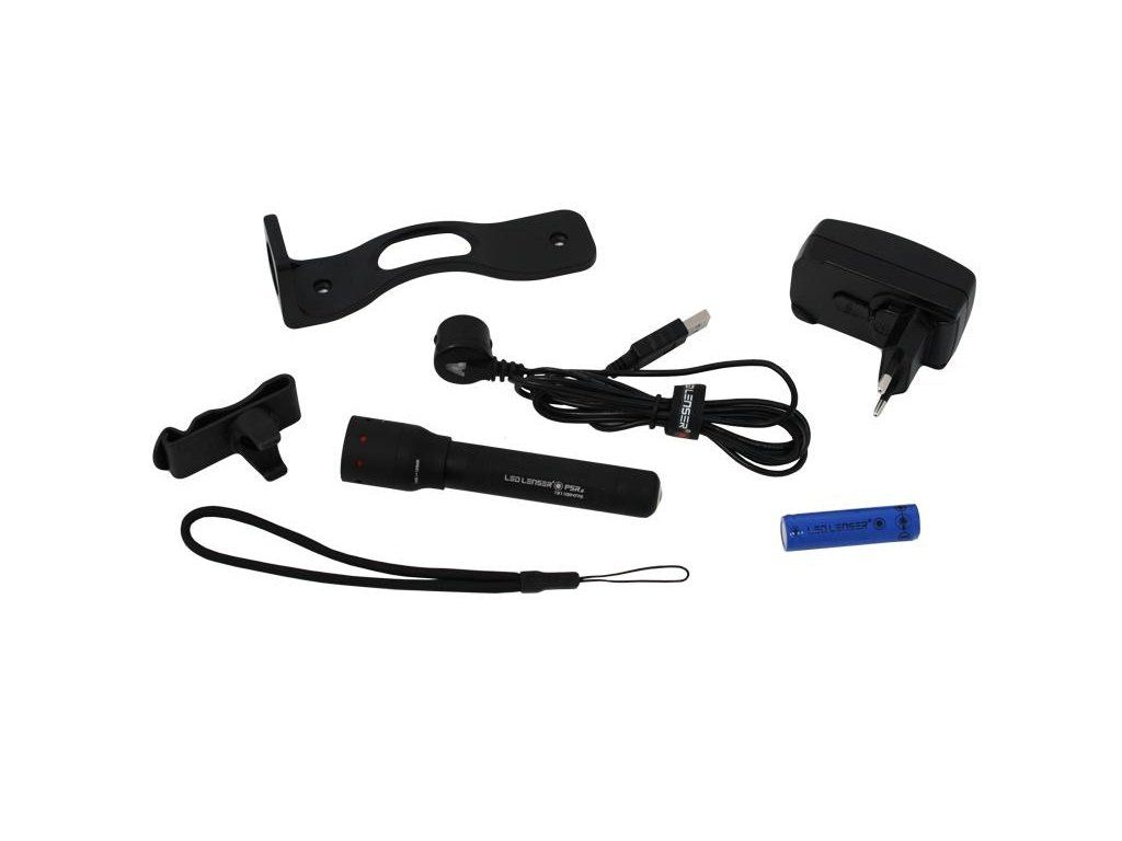Svietidlo LED Lenser P5R, nylonové puzdro k zaveseniu na opasok, šnúrka na zápästie, Li-ion akumulátor 14500 700mAh 3,7V, plastový stojan, USB kábel s magnetickým konektorom, 2x obojstrane lepiaca páska.