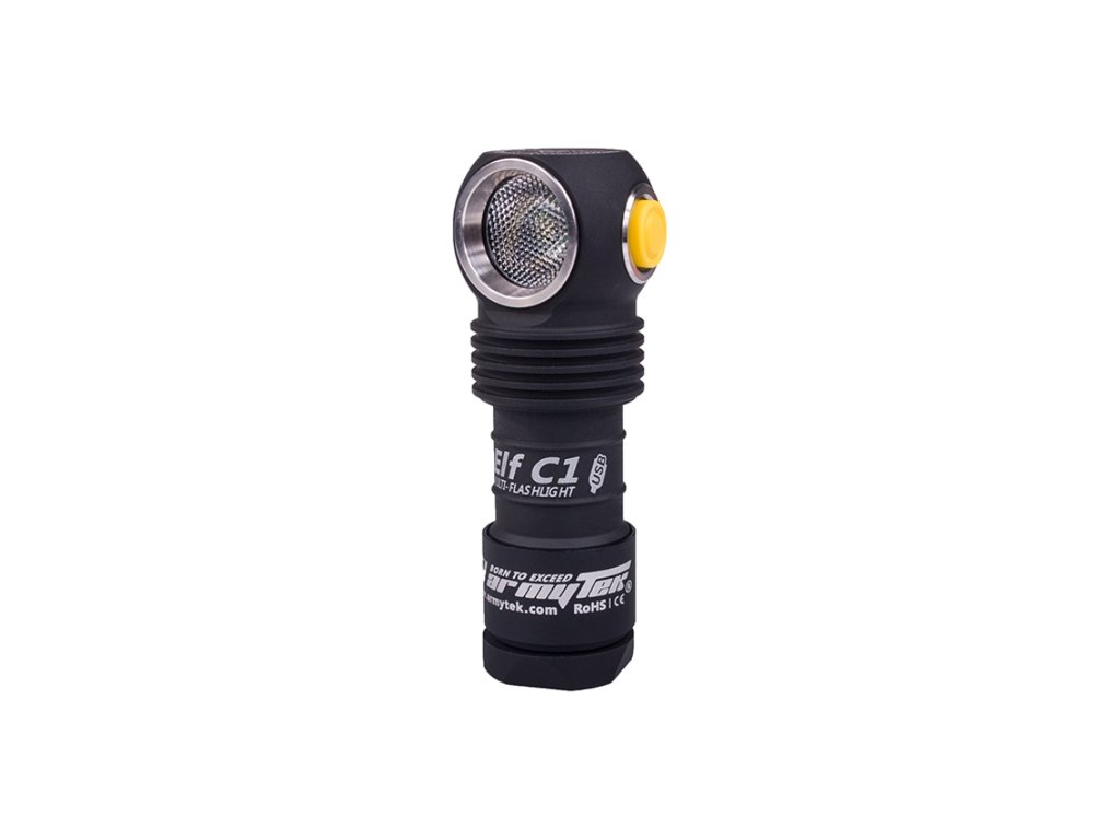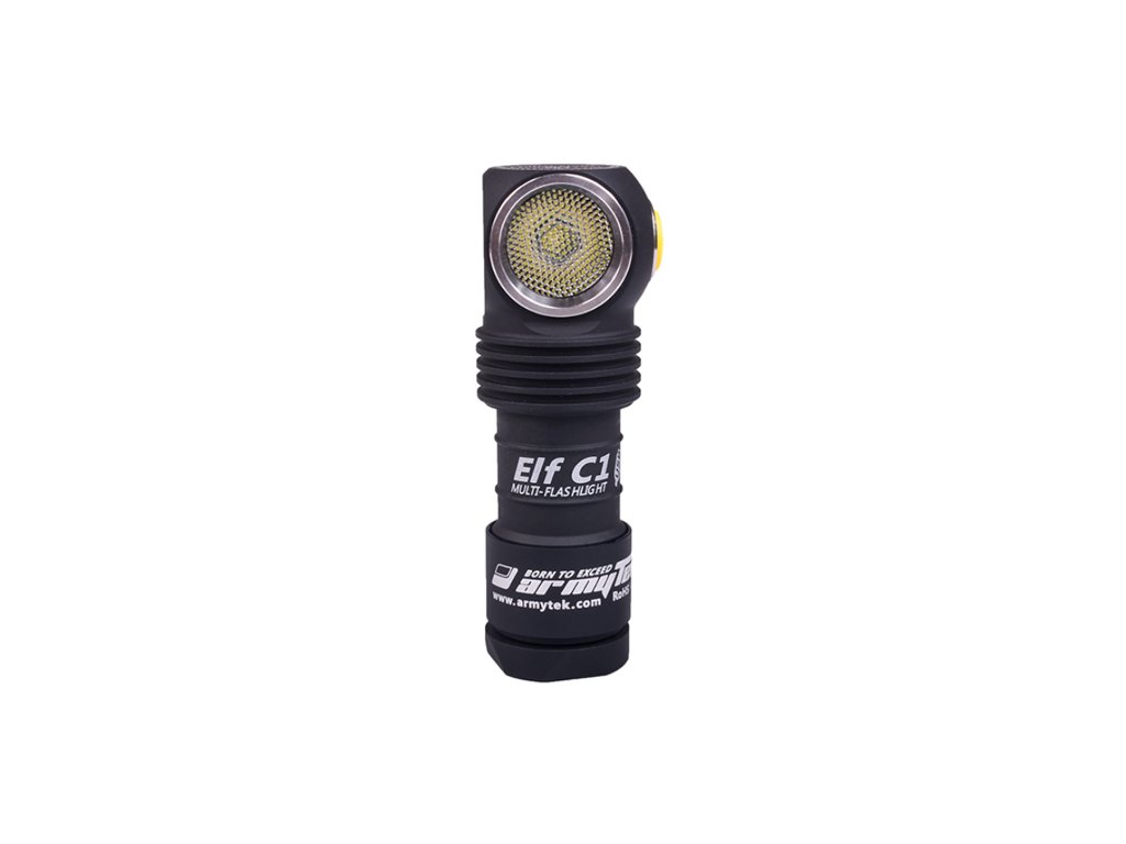 Elf C1 s max. výstupom, až 1050lm (900lm ANSI po stratách na optike). Je napájaná iba 1x Li-ion 18350 3,7V akumulátorom. TIR optika, ktorá je aplikovaná v sklíčku, zabezpečuje rozptyl svetla v uhle 70-120 stupňov. Poskytuje široký lúč svetla, až na vzdialenosť 102m.