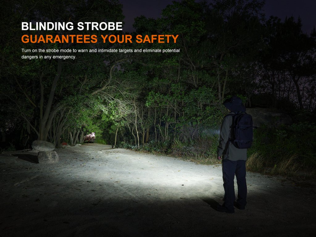 - Šesť režimov bieleho svetla: 3600 lúmenov (3,6 hodiny) -> 1500 (3,9 hodiny) -> 350 lúmenov (10,25 hodiny) -> 150 lúmenov (28,9 hodiny) -> 30 lúmenov (65,25 hodiny) -> stroboskop 3600 lúmenov.