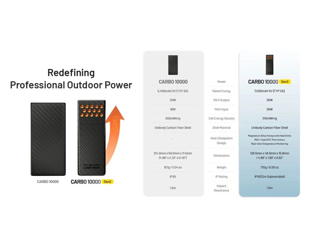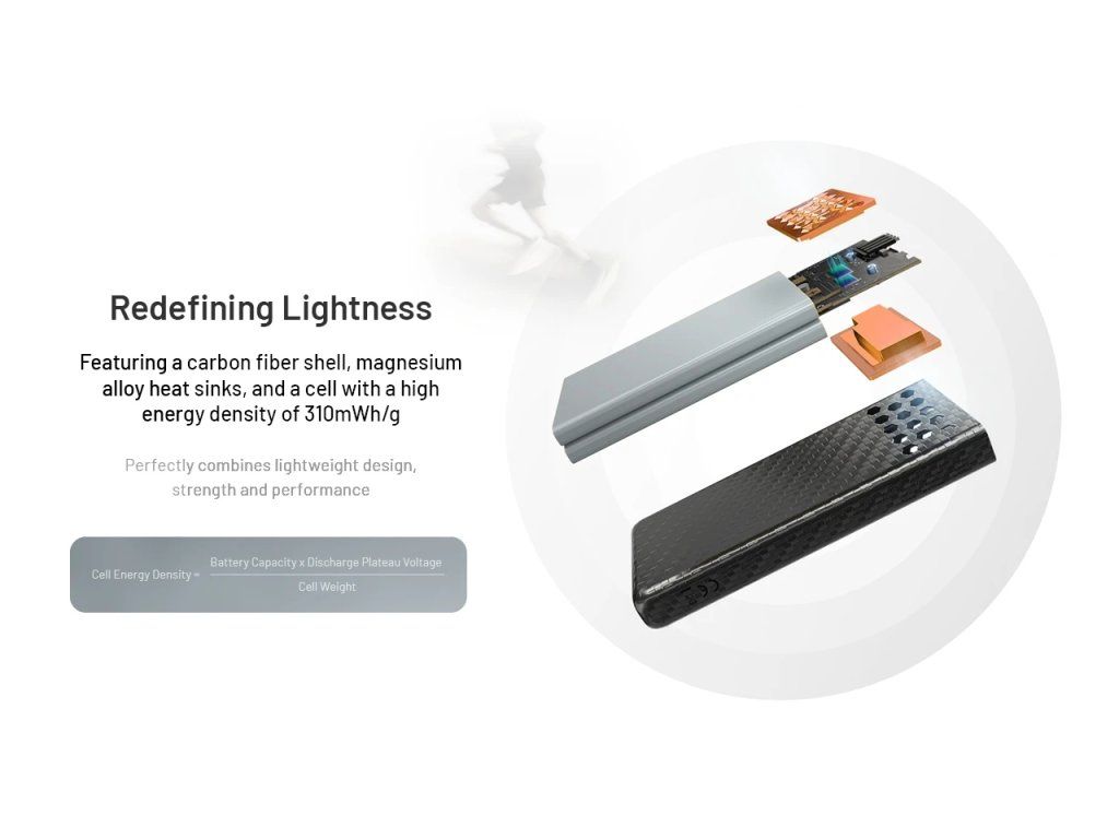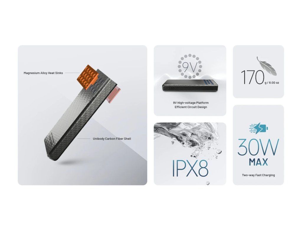 Revolučná powerbanka z uhlíkových vlákien s váhou iba 170g a výkonom 30W. Ideálna voľba pre ultralight turistiku a extrémne outdoorové podmienky s odolnosťou proti nárazu z 1,5m.
