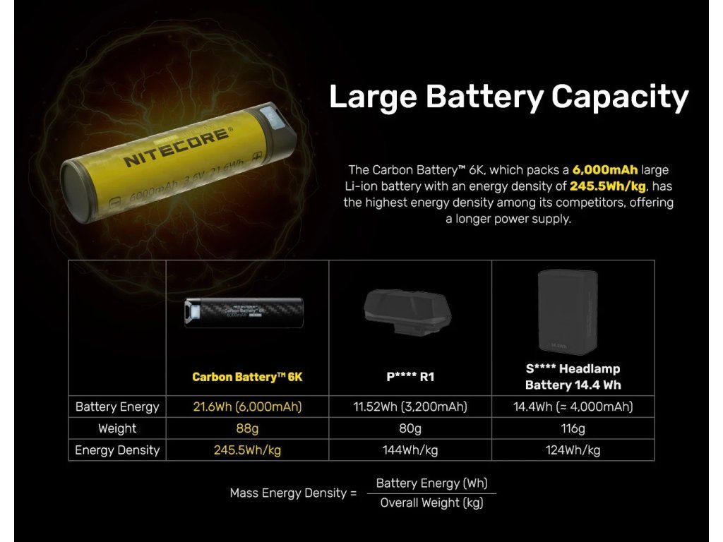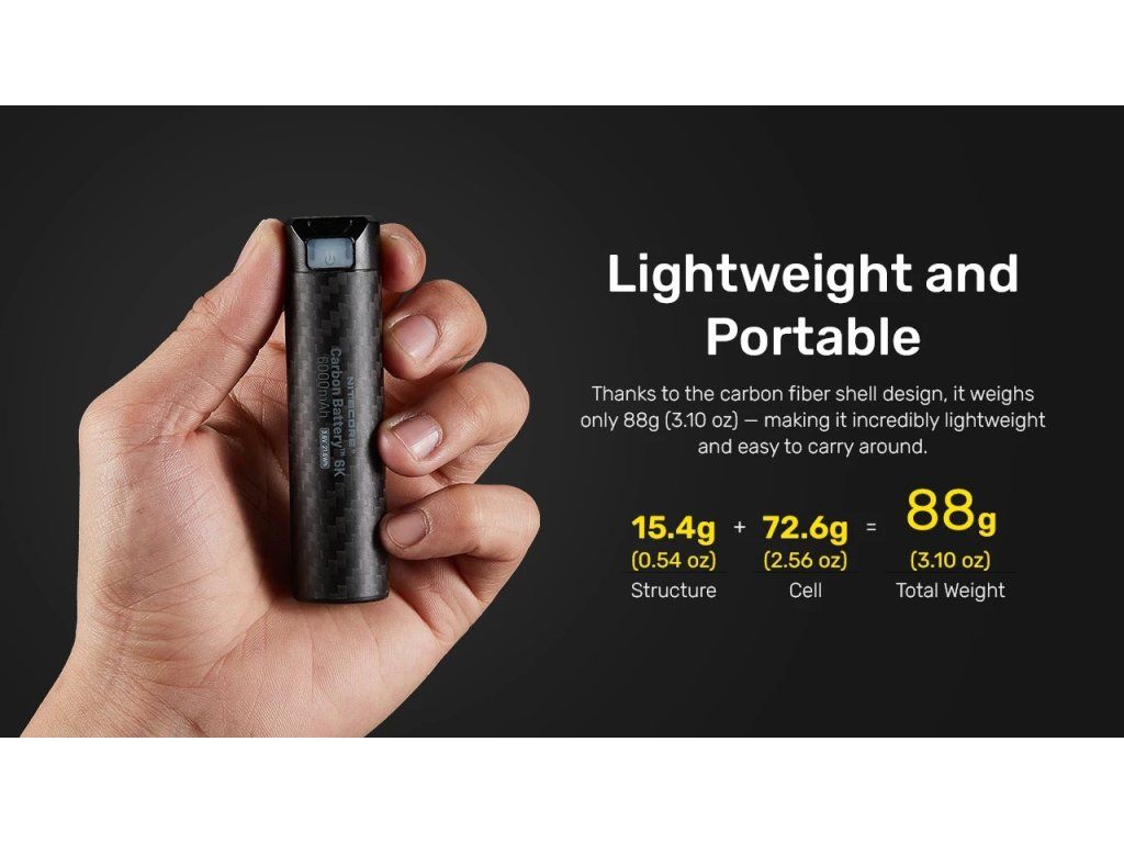 KĽÚČOVÉ VLASTNOSTI NITECORE Carbon Battery™ 6K: