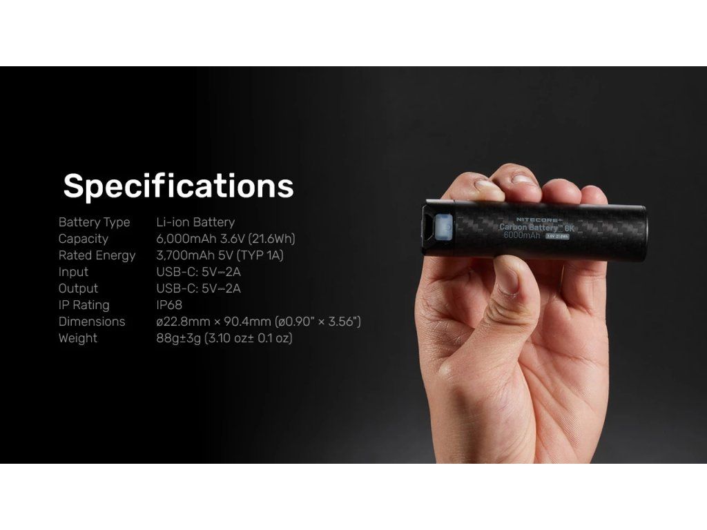 TECHNICKÁ ŠPECIFIKÁCIA NITECORE Carbon Battery™ 6K: