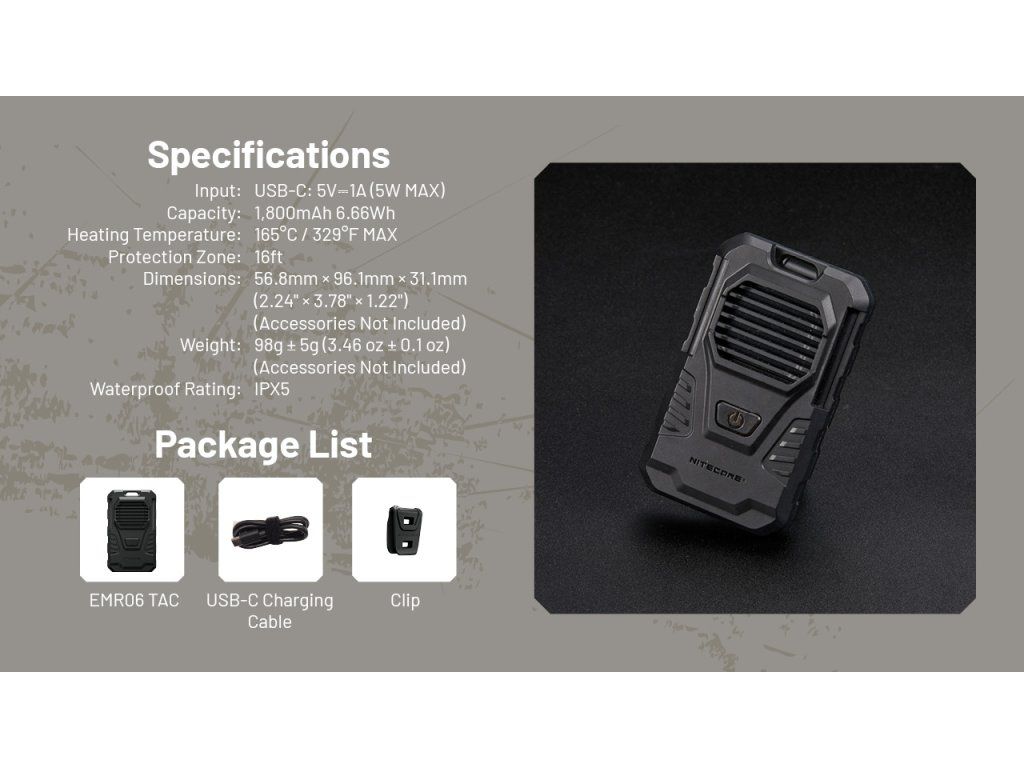Nitecore EMR06 TAC 800 mAh – Prenosný taktický odpudzovač hmyzu (MOLLE) 800 mAh | 5m zóna | IPX5 | MOLLE systém | Ultraľahký