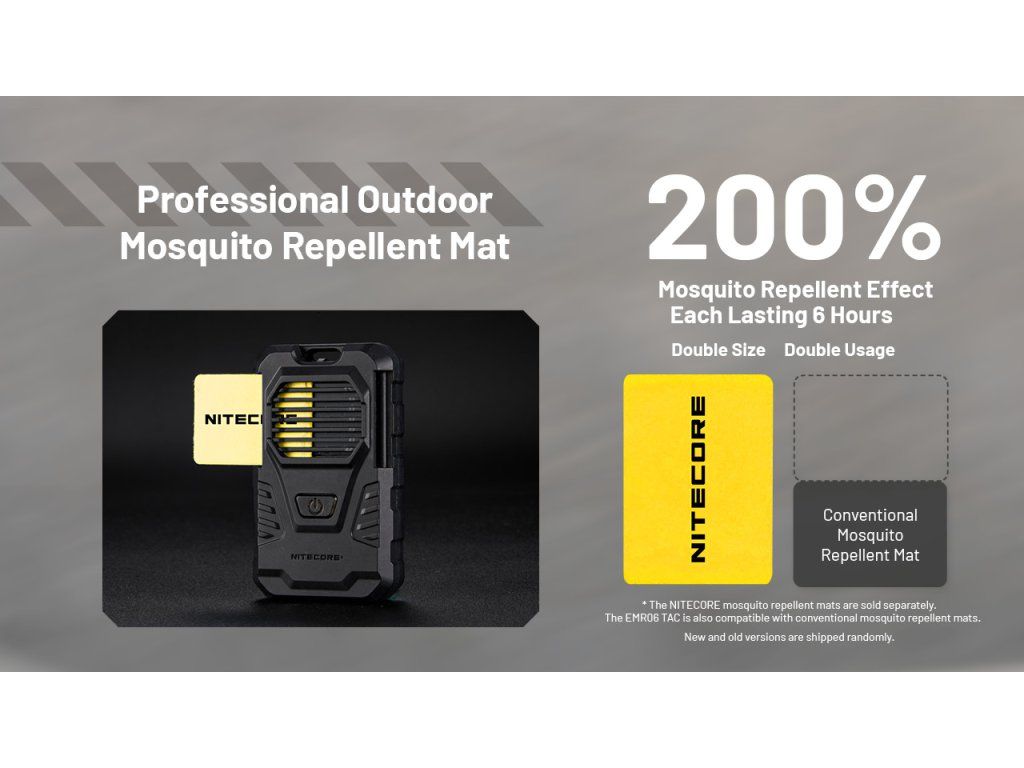Pre maximálne využitie v teréne odporúčame k EMR06 TAC zakúpiť originálne Nitecore Repelentné vankúšiky, ktoré majú o 100% dlhšiu životnosť než bežné alternatívy. Ak hľadáte riešenie na celú noc bez nutnosti externej powerbanky, odporúčame vyšší model Nitecore EMR40 s 10-hodinovou výdržou.