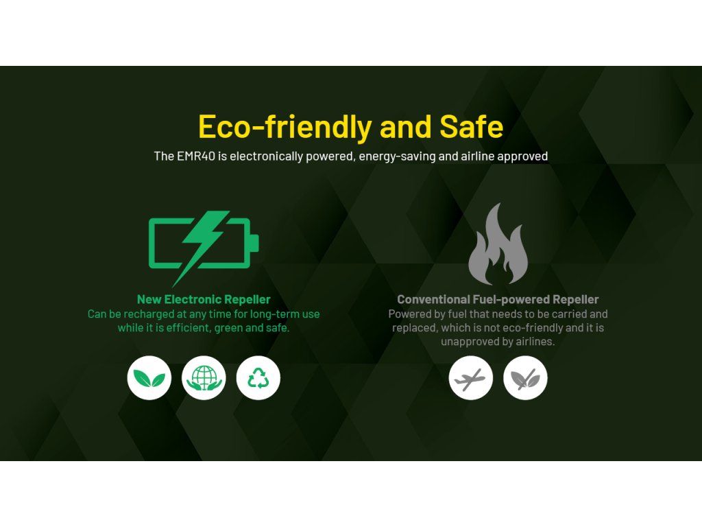 Pri viacdňových pobytoch v prírode je EMR40 neoceniteľný vďaka svojej výdrži. Vytvára bezpečnú zónu v okolí stanu bez nutnosti nosiť so sebou tekuté repelenty, ktoré môžu vytiecť do batohu. Integrovaný akumulátor eliminuje potrebu neustálej výmeny batérií.