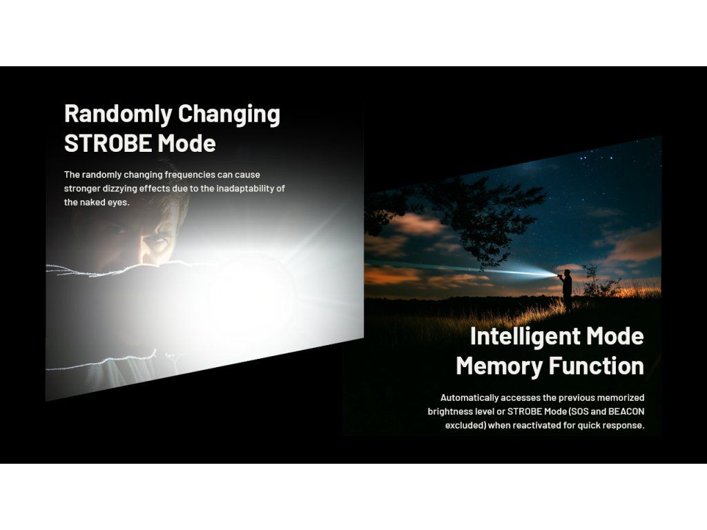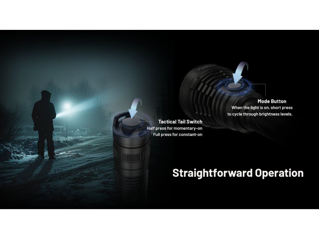 Robustná konštrukcia z leteckého hliníka a taktický zadný spínač sú navrhnuté pre hrubú manipuláciu v rukaviciach. Režim Stroboskop s premenlivou frekvenciou dokáže okamžite dezorientovať narušiteľa, zatiaľ čo úzky lúč slúži na presné označenie objektov na veľkú vzdialenosť pri strážení hraníc alebo veľkých areálov.